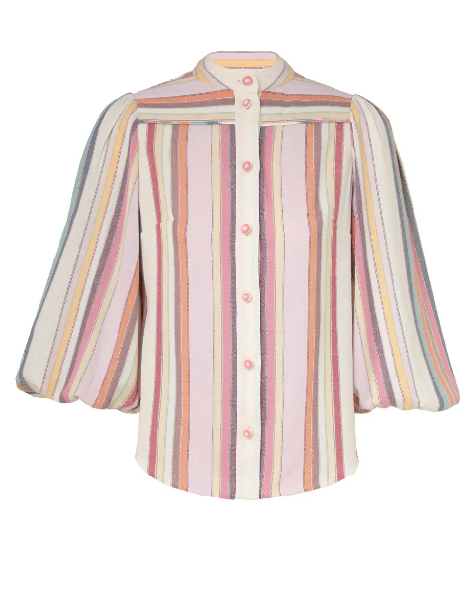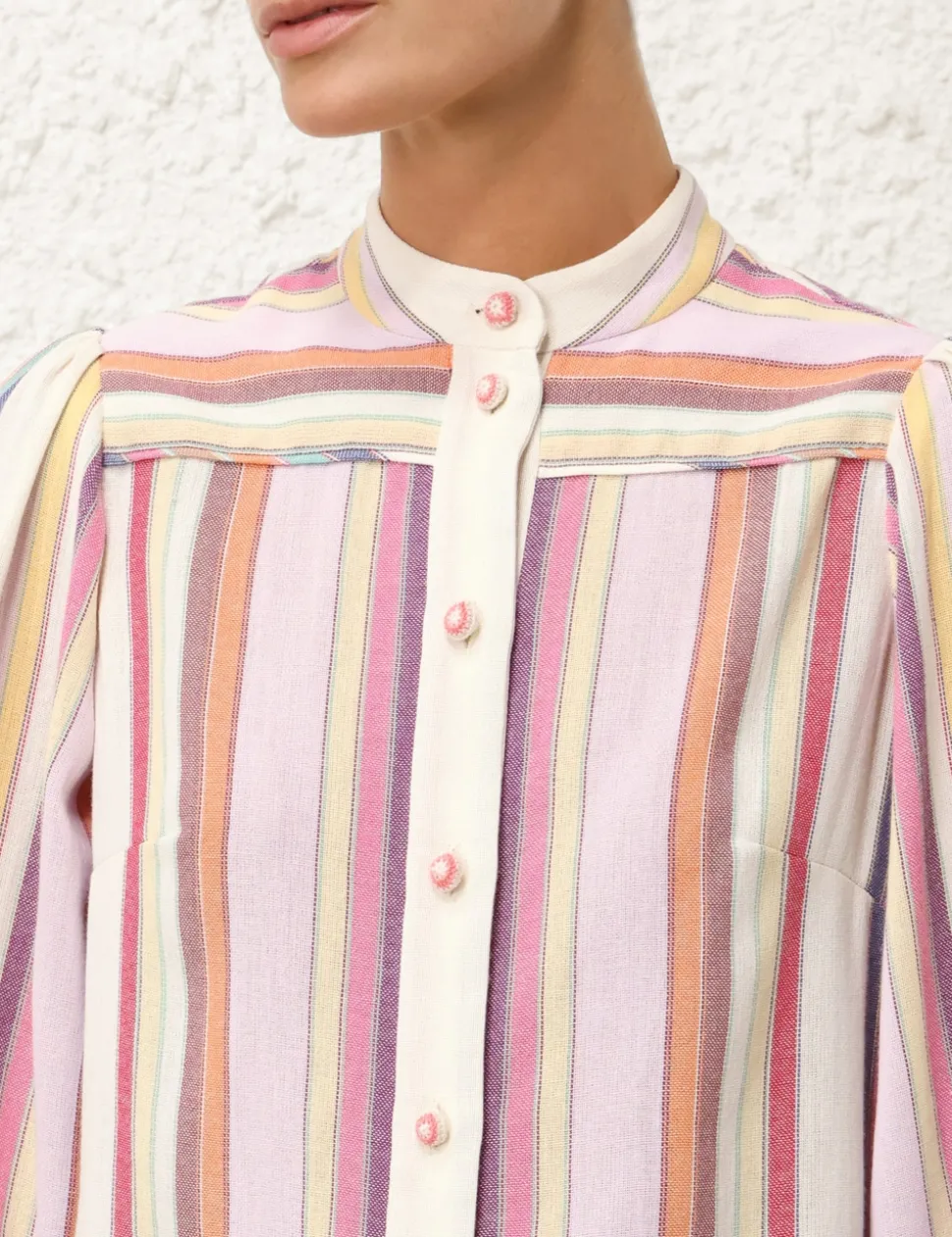 The Lexi Blouson Stripe Shirt In Multi Stripe From Our Resort Swim 2024 Collection. A Cotton Long Sleeve Shirt Featuring A Stripe Placement Print.- Long Sleeve Fitted Shirt