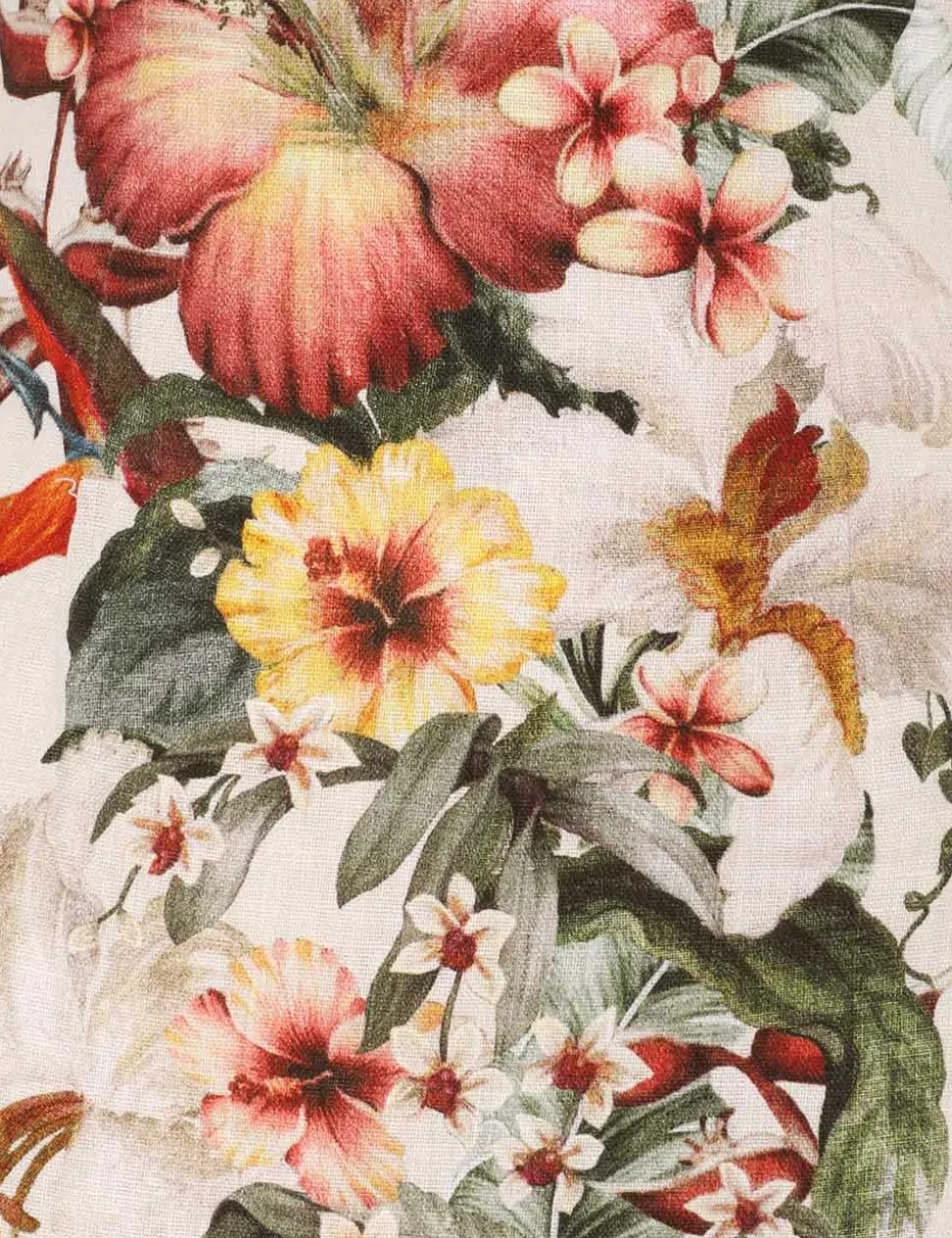 The Lexi Column Dress In Ivory Palm From Our Resort Swim 2024 Collection. A Strapless Linen Midi Dress Featuring A Floral Placement Print On The Front Bodice And Skirt.- Linen Midi Dress