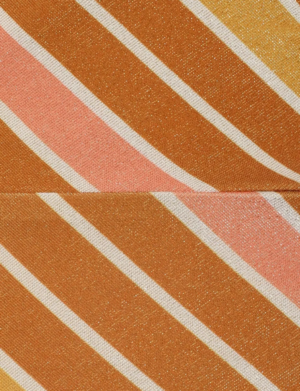 The Lexi Lurex Scarf Tie 1Pc In Caramel Lurex Multi Stripe From Our Resort Swim 2024 Collection. A Lycra Bandeau Style One Piece Featuring A Cutaway Waist With A Scarf Tie Detail.- Lycra Bandeau One Piece