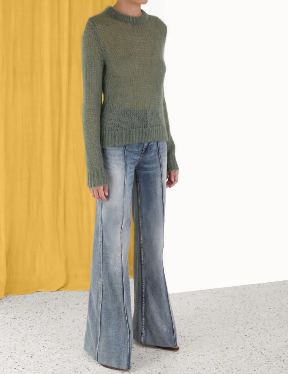 The Luminosity Crew Neck Sweater In Khaki From Our Fall 2023 Collection, Luminosity. A Mohair Blend Sweater Featuring Crew Neck And Ribbed Details Throughout.- Knitted Sweater