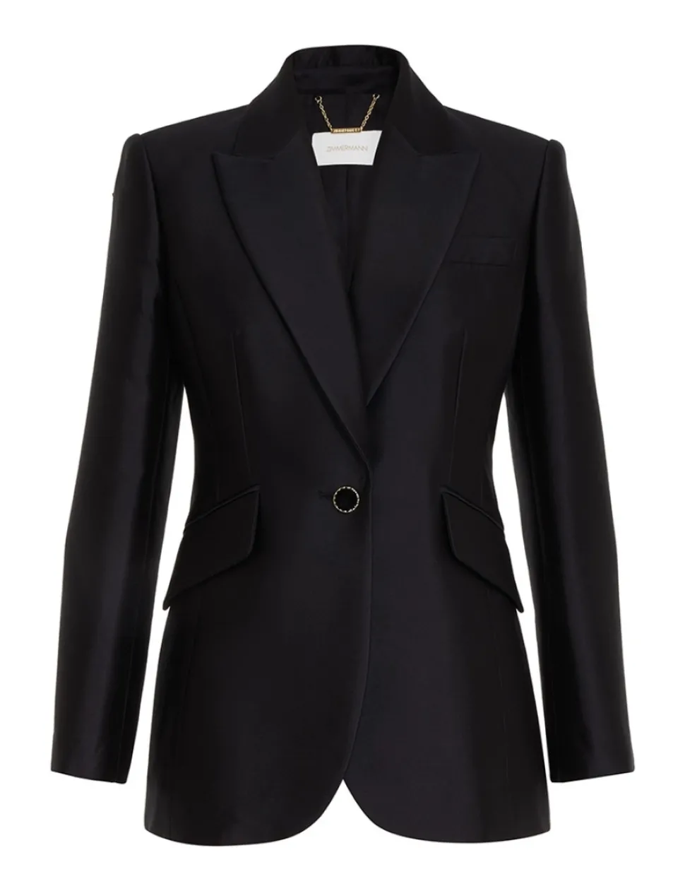 The Luminosity Fitted Jacket In Black From Our Fall 2023 Collection, Luminosity. A Silk Wool Blazer Featuring A Tailored Fit And Single Breasted Closure.- Silk Wool