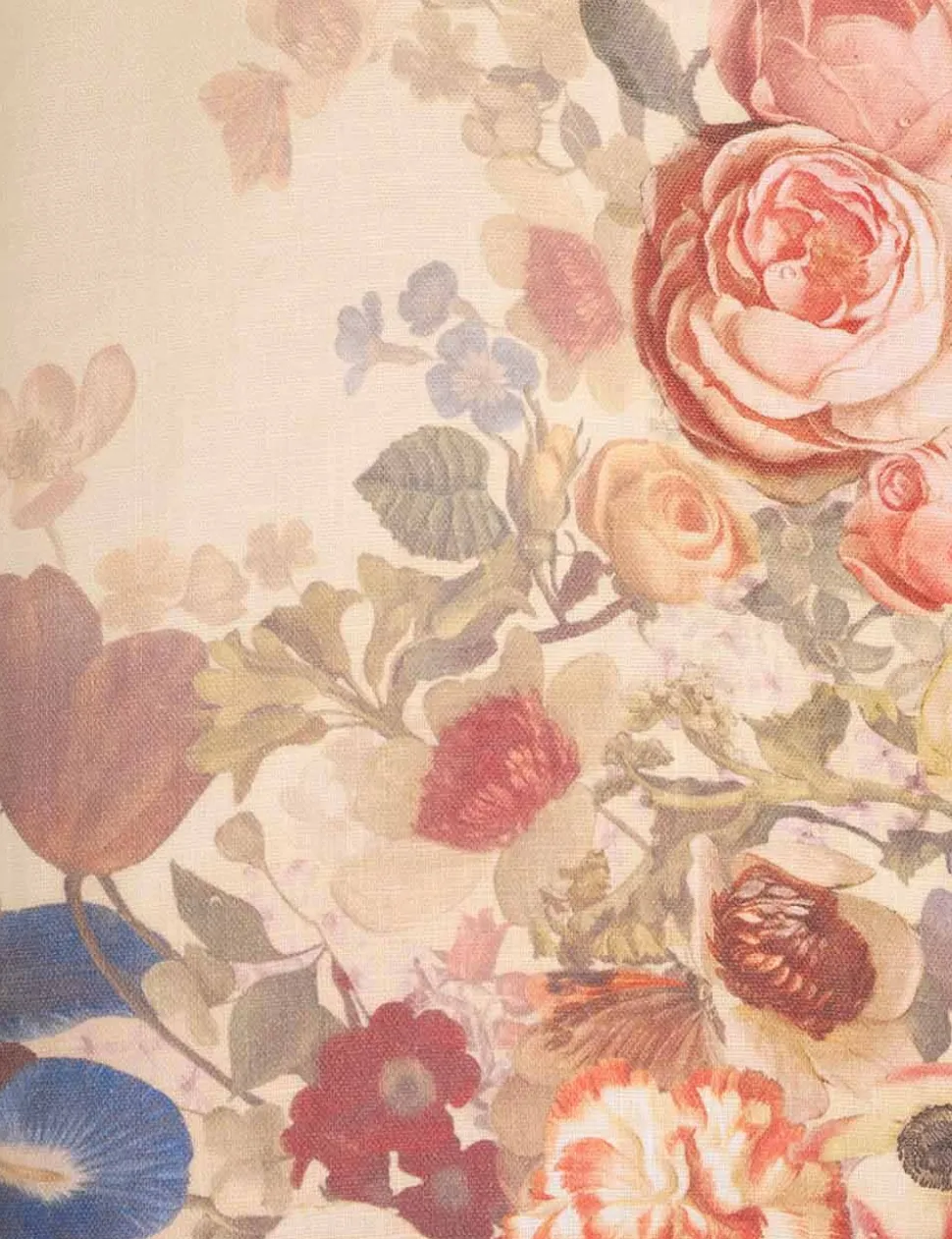 The Luminosity Liftoff Flower Top In Morisot Cream Print From Our Fall 2023 Collection, Luminosity. A Silk Linen Slim Bodice Featuring Short Sleeves And A Funnel Neck, Finished With 3D Moulded Flowers.- Silk Linen Bodice