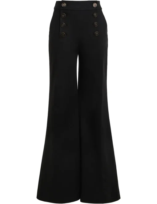 The Luminosity Sailor Pant In Black From Our Fall 2023 Collection, Luminosity. A High Waisted, Wide Leg Pant Featuring Custom Buttons, Finished With A Zip Closure And Welt Pockets.- Wide Leg Pant