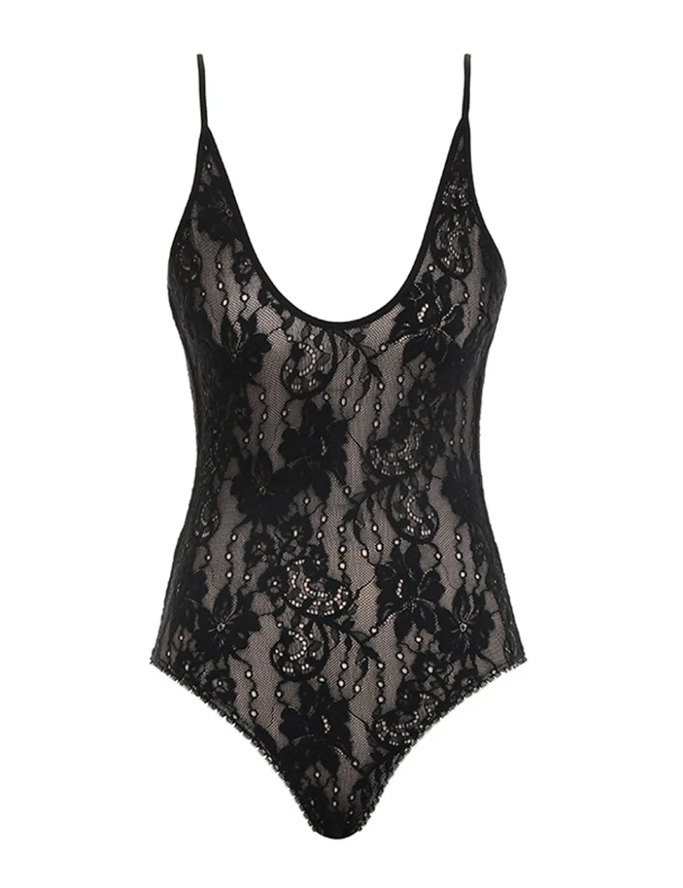 The Luminosity Scoop Neck Bodysuit In Black From Our Fall 2023 Collection, Luminosity. A Lace Bodysuit Featuring A Scoop Neck And Back, Finished With Adjustable Straps.- Stretch Lace