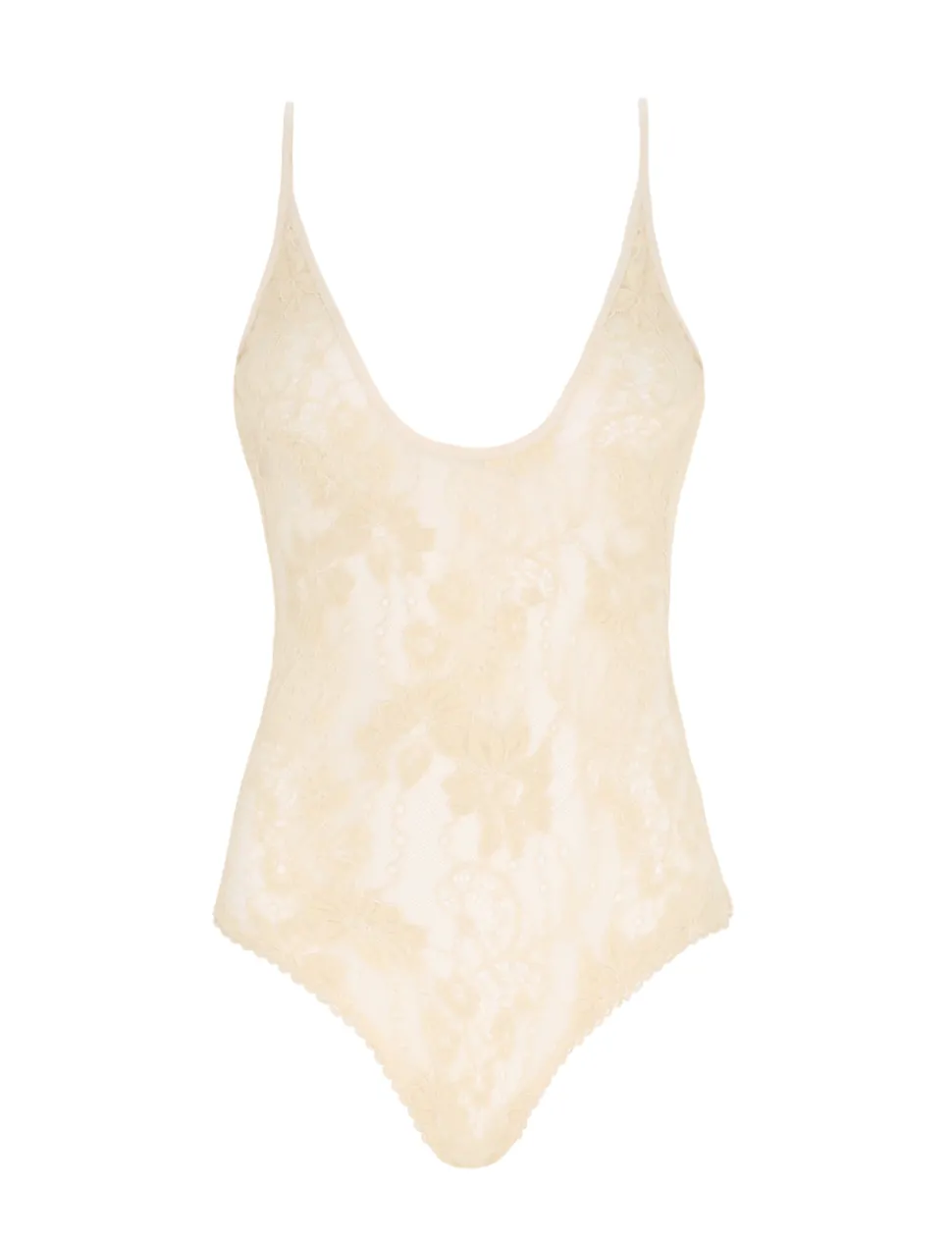 The Luminosity Scoop Neck Bodysuit In Parchment From Our Fall 2023 Collection, Luminosity. A Lace Bodysuit Featuring A Scoop Neck And Back, Finished With Adjustable Straps.- Stretch Lace