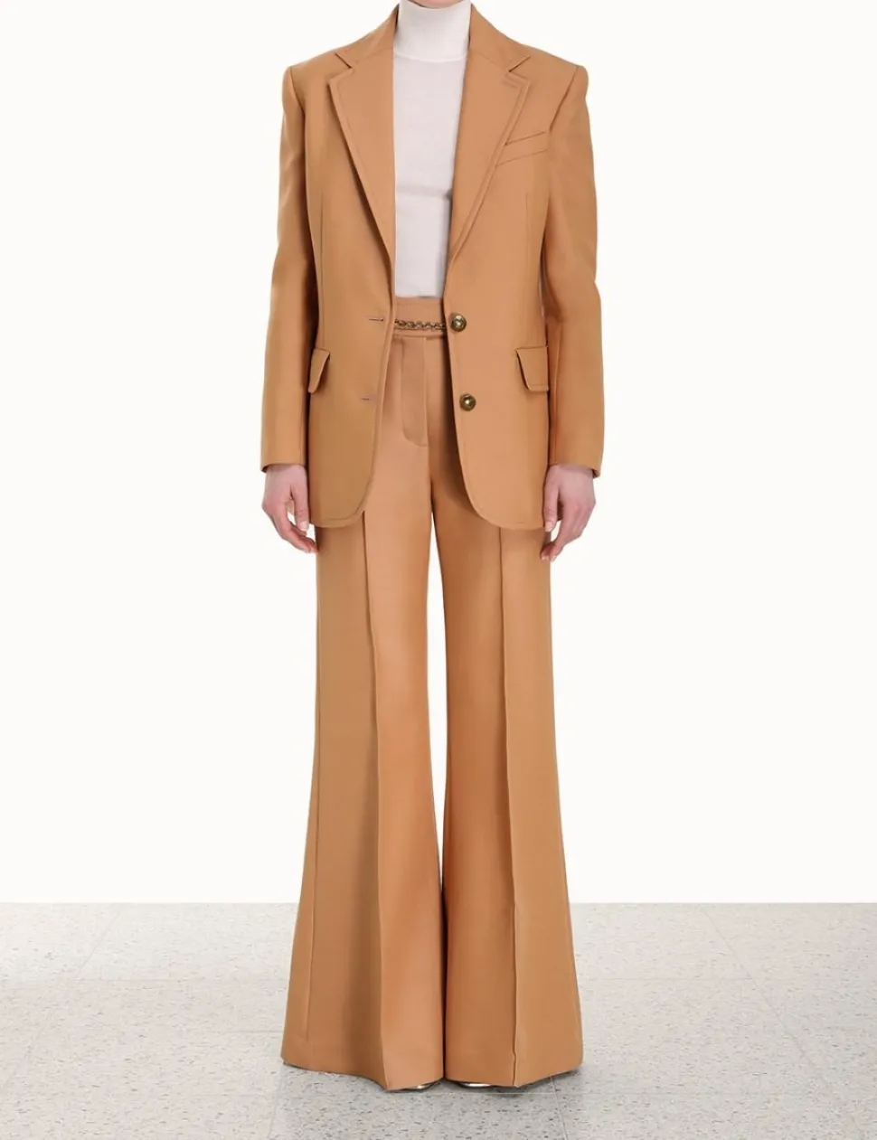 The Luminosity Tailored Jacket In Biscuit From Our Fall 2023 Collection, Luminosity. A Wool Blend Suiting Jacket Featuring Front Patch Pockets, Single Breasted Closure And Topstitching Throughout.- Wool Viscose Jacket
