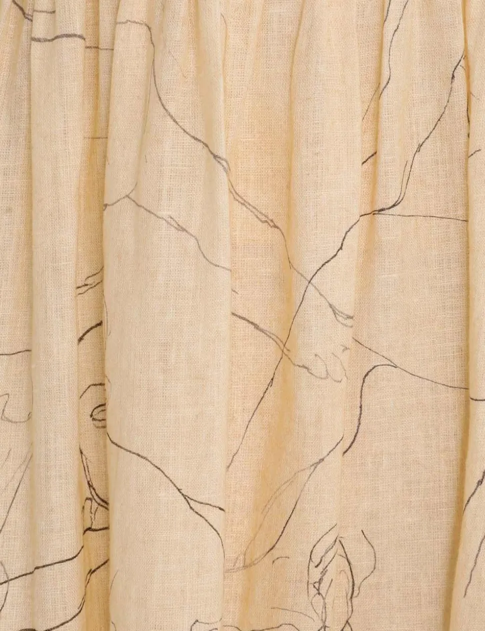 The Luminosity Tie Midi Dress In Sketchbook Print From Our Fall 2023 Collection, Luminosity. A Linen Midi Dress Featuring Side Seam Pockets, Cuffed Sleeves And A Removable Belt.- Linen Midi Dress
