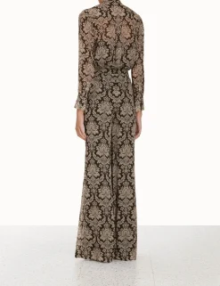 The Luminosity Tubular Shirt In Black Damask From Our Fall 2023 Collection, Luminosity. A Relaxed Shirt Featuring Long Sleeves With Buttoned Cuffs And A Self Tie Neck.- Relaxed Shirt