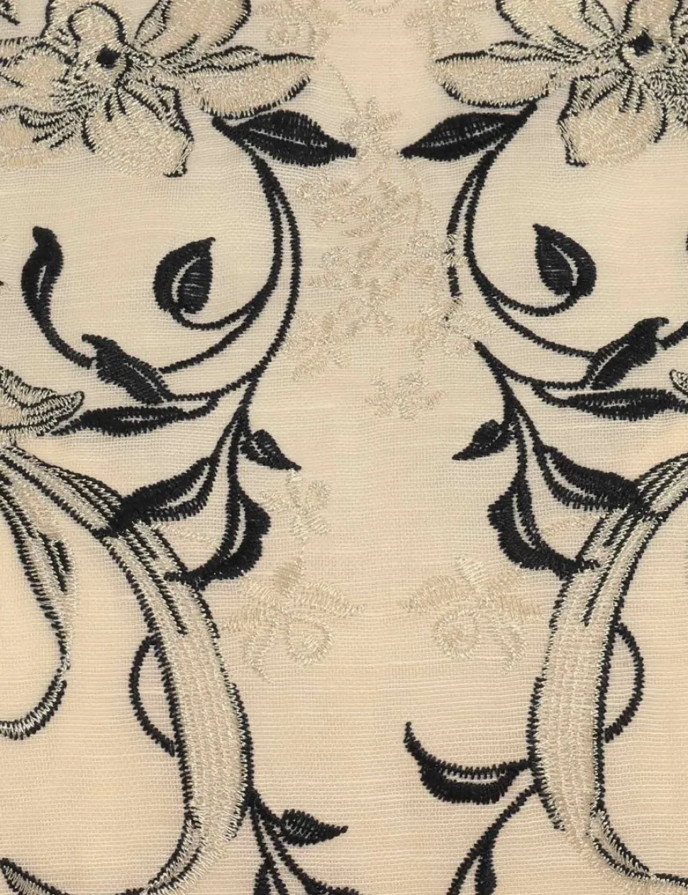 The Lyrical Embroidery Mini Dress In Book Cover Gold/Cream From Our Fall 2023 Collection, Luminosity. A Silk Linen Mini Dress Featuring A Full Asymmetric Skirt And Contrast Embroidery Throughout.- Silk Linen Mini Dress