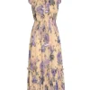 The Lyrical Flutter Dress In Blue Floral Print From Our Fall 2023 Collection, Luminosity. A Silk Crinkle Georgette Midi Dress Featuring A Drop Hem And 3D Applique Flowers Along The Collar.- Silk Crinkle Georgette