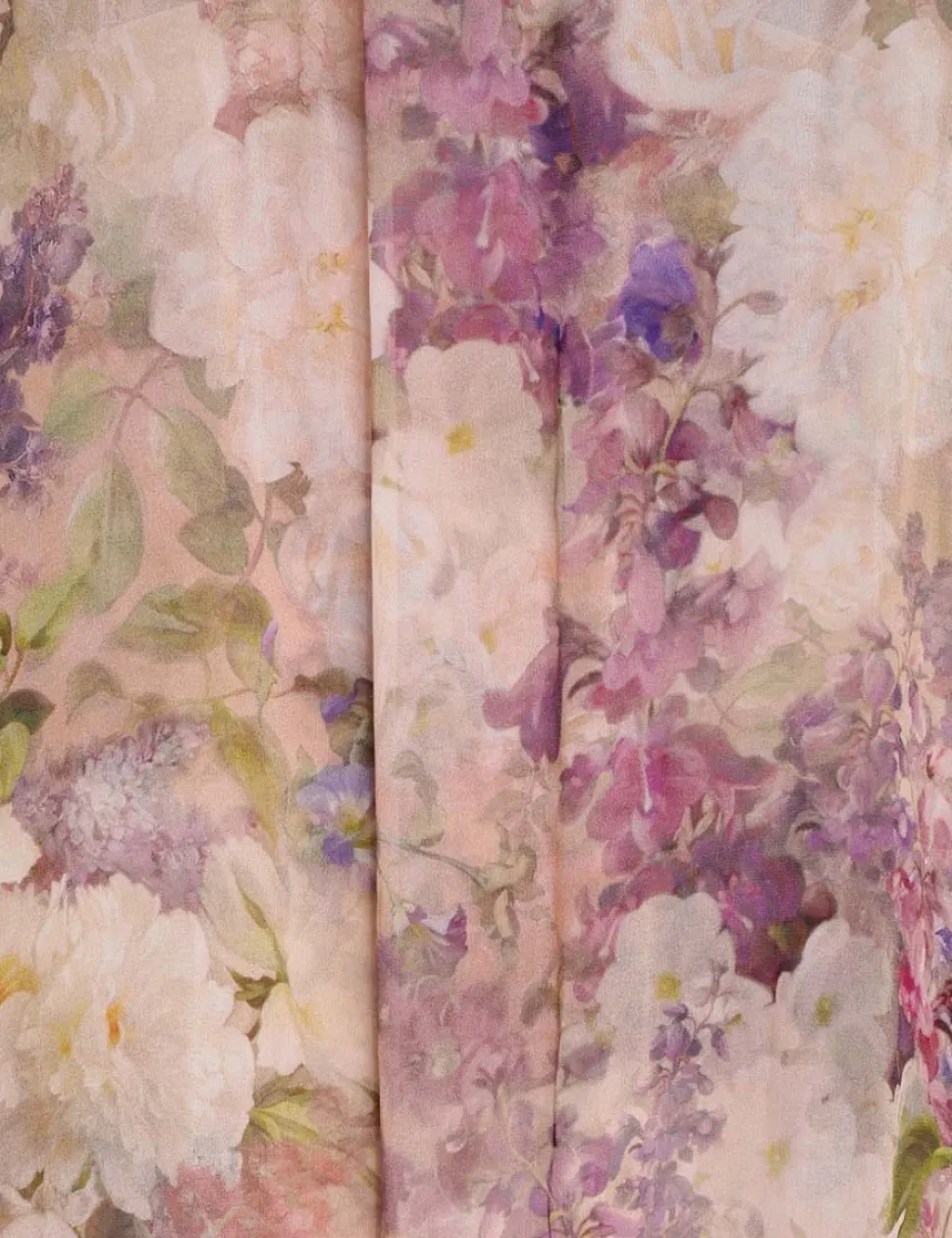 The Lyrical Lantern Midi Dress In Dreamy Floral From Our Fall 2023 Collection, Luminosity. A Midi Dress Featuring Long Fluted Sleeves And Stand Collar, Finished With A Frilled Drop Hem.- Relaxed Midi Dress