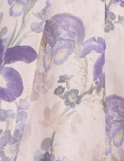 The Lyrical Tuck Shorts In Blue Iris Cream From Our Fall 2023 Collection, Luminosity. A High Waisted Linen Short Featuring Side Seam Pockets And A Self Cover Buckle Belt.- Linen