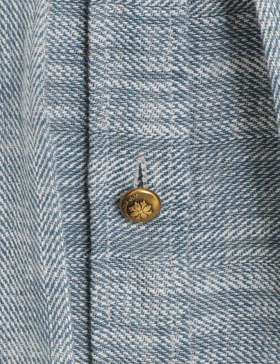 The Lyrical Tunic Blouse In Blue/Cream From Our Fall 2023 Collection, Luminosity. A Linen Blend Blouse Featuring A Self Tie Neck And Custom Branded Buttons Throughout.- Linen Cotton Blend Fabrication
