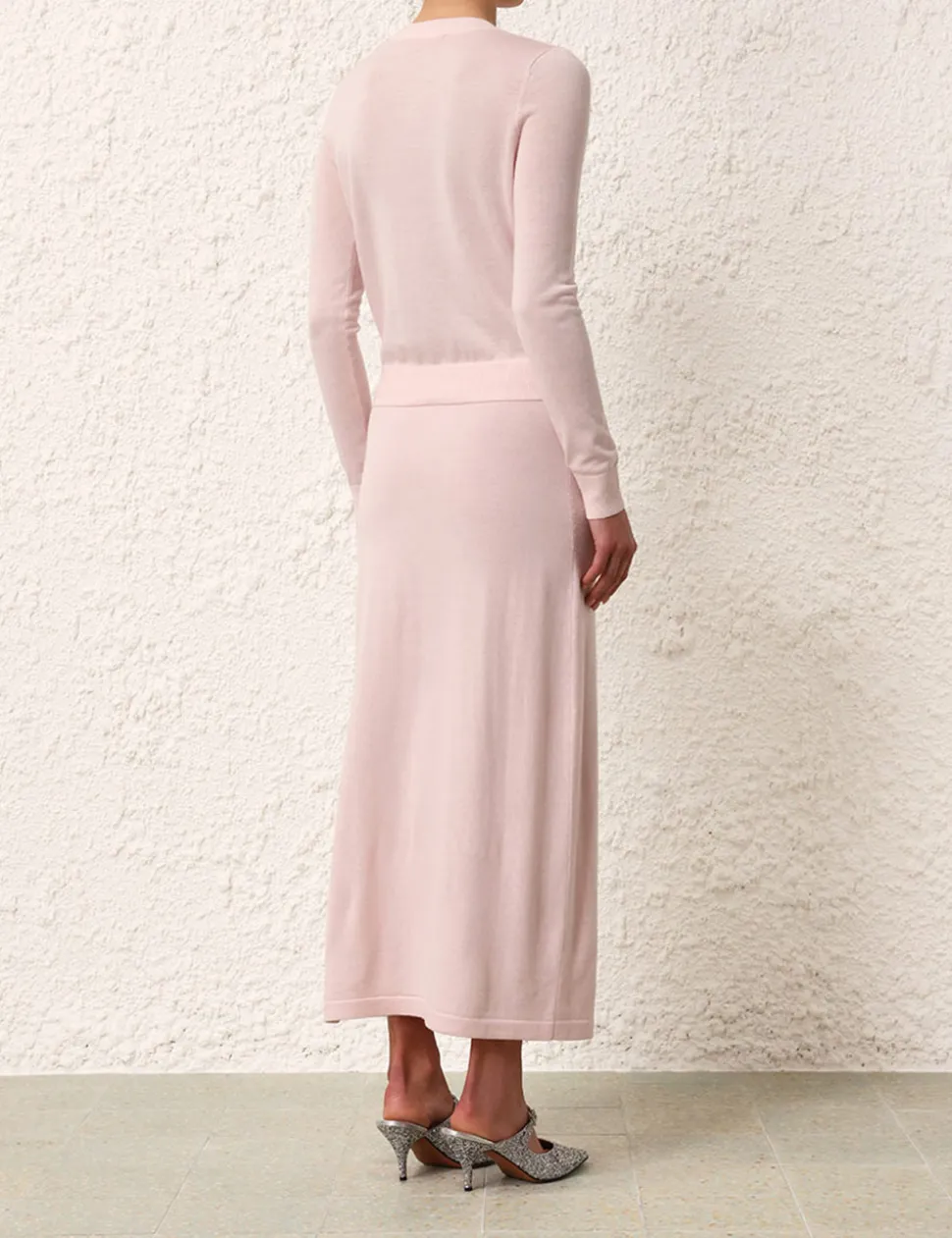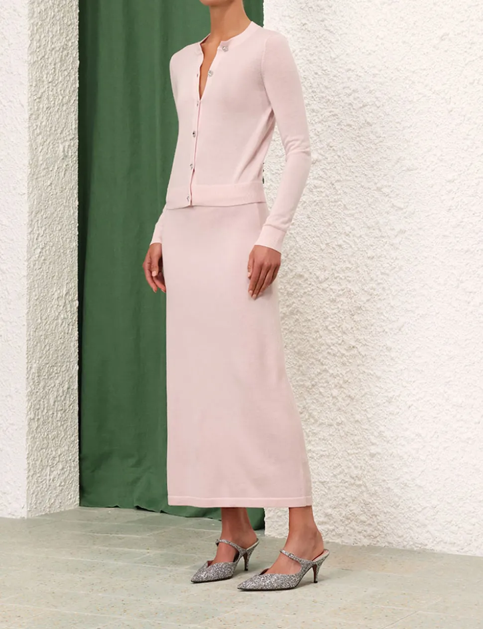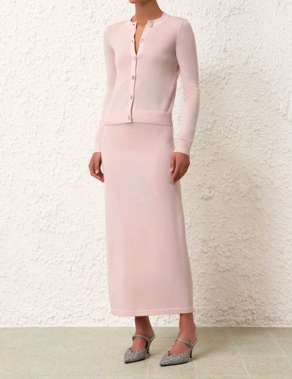 The Matchmaker Embellished Cardigan In Dusty Pink From Our Resort 2024 Collection, Matchmaker. A Wool Cardigan Featuring Crystal Buttons Down The Centre Front.- Wool Cardigan