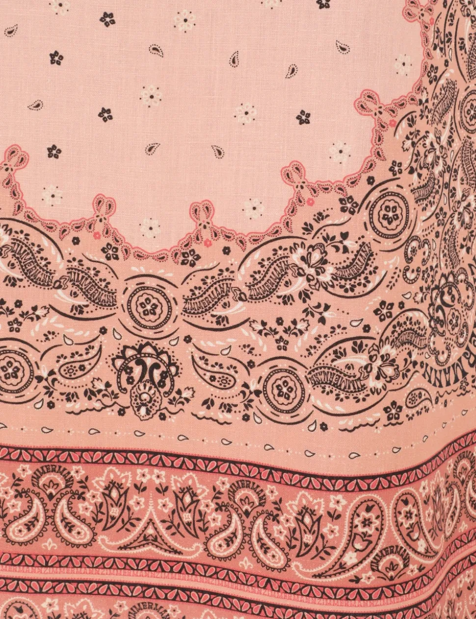 The Matchmaker Frilled Midi In Pink Bandana From Our Resort 2024 Collection, Matchmaker. A Linen Midi Dress Featuring A Square Frilled Neckline And Frill Straps, Finished With A Cutaway Back And Self Tie Closure.- Linen Midi Dress