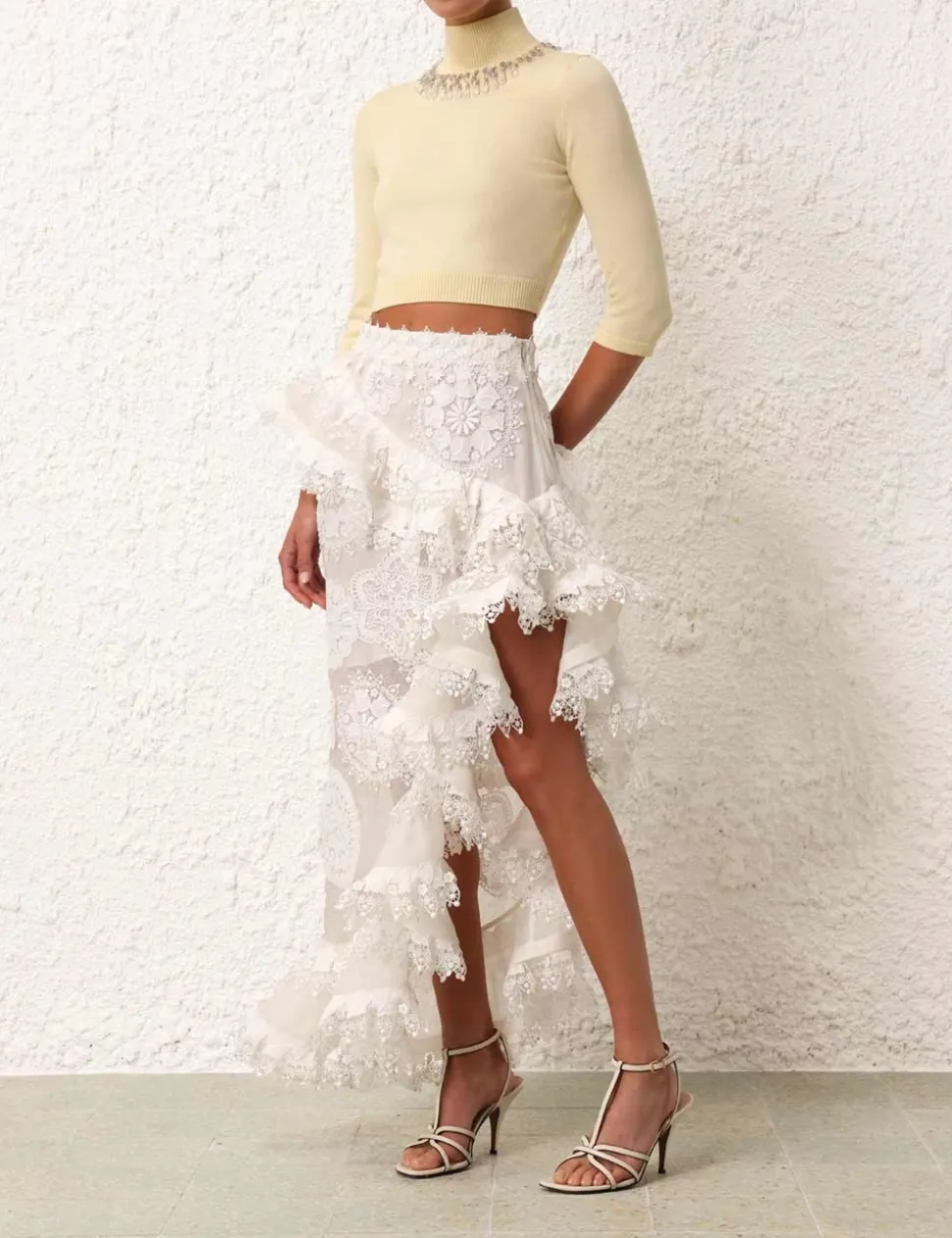 The Matchmaker High Neck Crop Top In Lemon From Our Resort 2024 Collection, Matchmaker. A Cashmere Crop Top Featuring A Crystal Jewel Trim Along The Neckline.- Cashmere Top