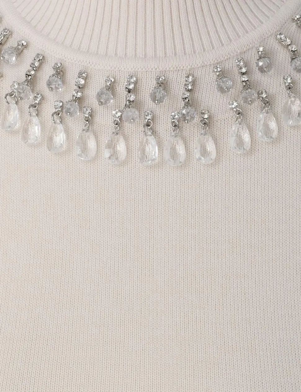 The Matchmaker High Neck Crop Top In Parchment From Our Resort 2024 Collection, Matchmaker. A Cashmere Crop Top Featuring A Crystal Jewel Trim Along The Neckline.- Cashmere Top