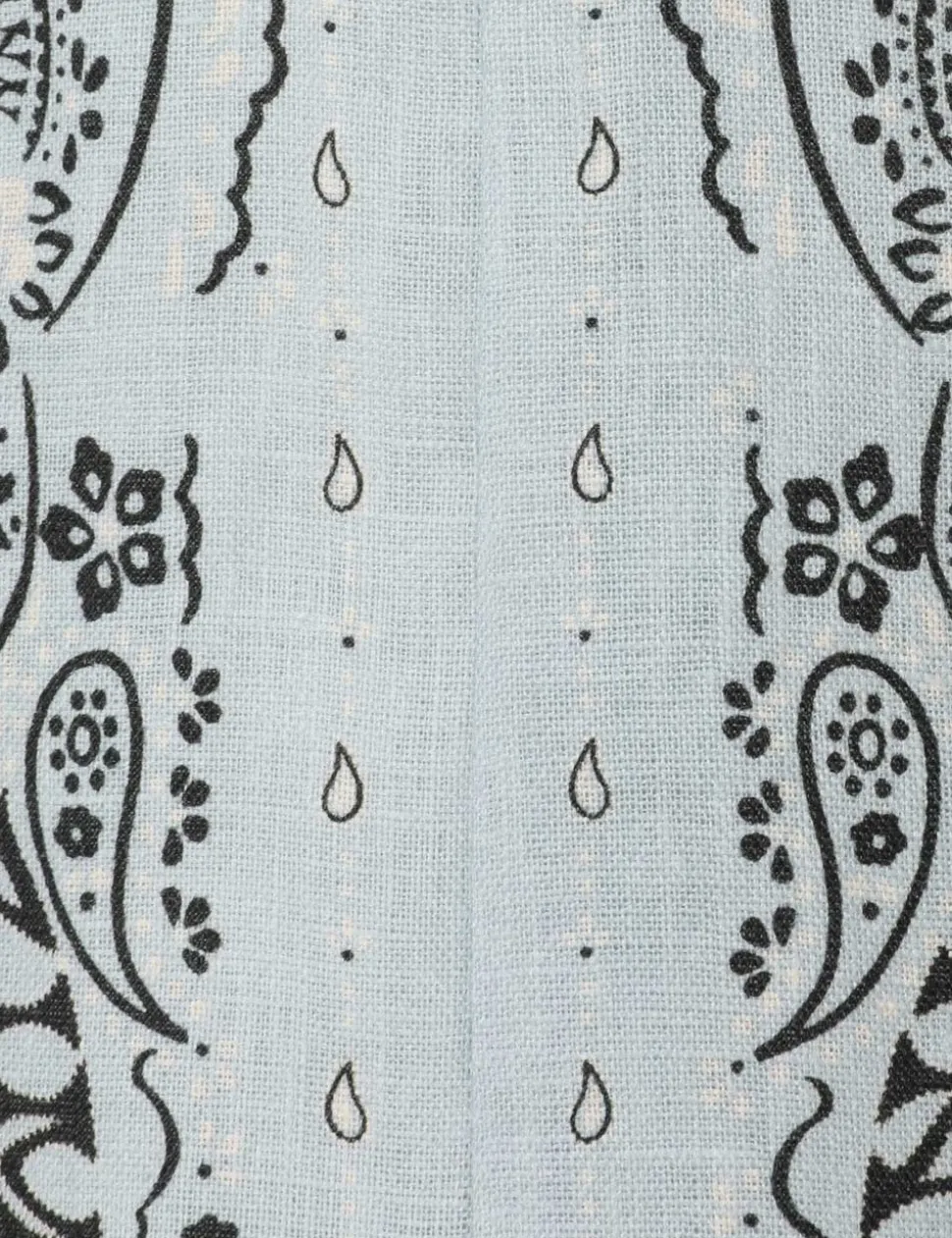The Matchmaker Keyhole Mini Dress In Blue Bandana From Our Resort 2024 Collection, Matchmaker. A Long Sleeve Linen Mini Featuring A Centre Front Keyhole Detail And Elasticated Sleeve Cuffs.- Linen Mini Dress