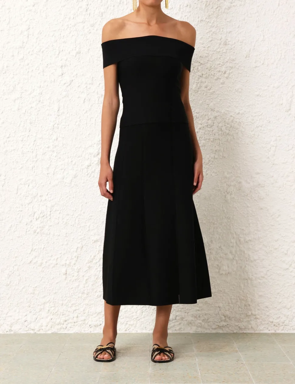 The Knit Panelled Midi Skirt In Black From Our Resort 2024 Collection, Matchmaker. A Knitted Midi Skirt Featuring A Pointelle Stitch Detail Throughout.- Knitted Midi Skirt