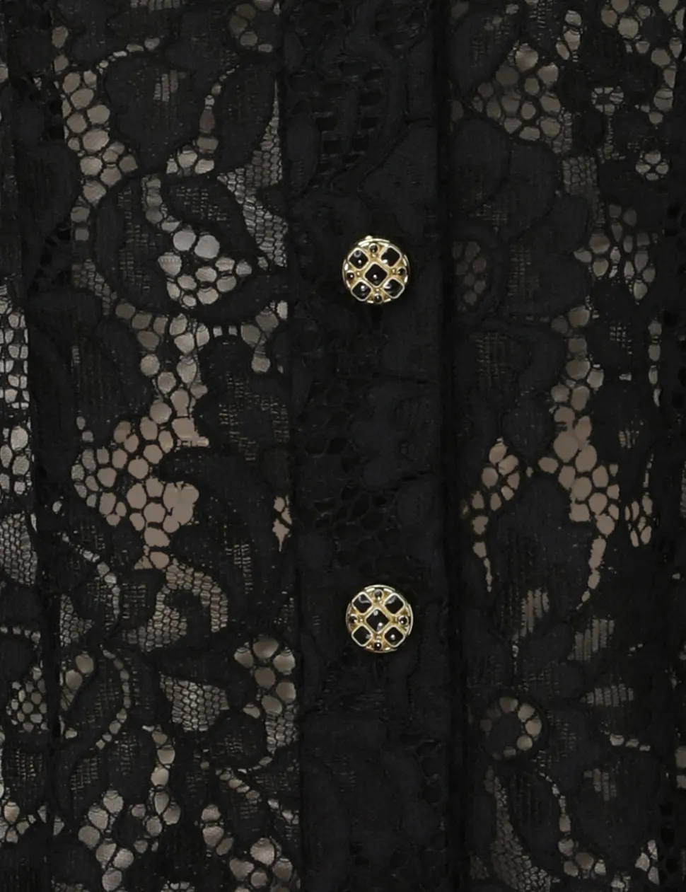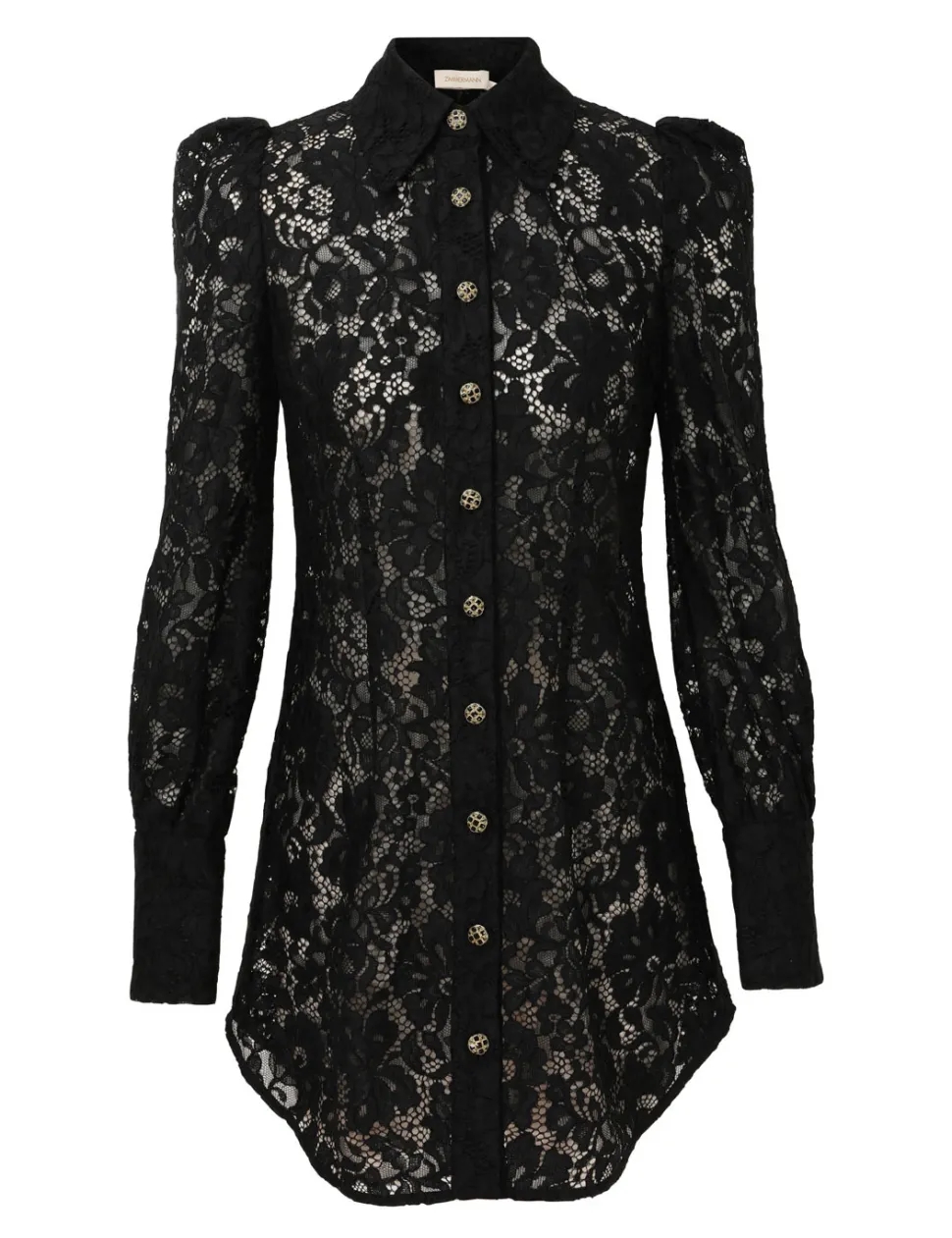 The Matchmaker Lace Tunic In Black From Our Resort 2024 Collection, Matchmaker. A Long Sleeve Lace Tunic Featuring A Classic Collar And Buttons Down The Centre Front.- Lace Tunic