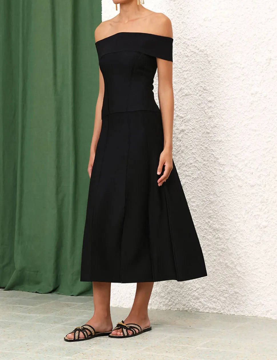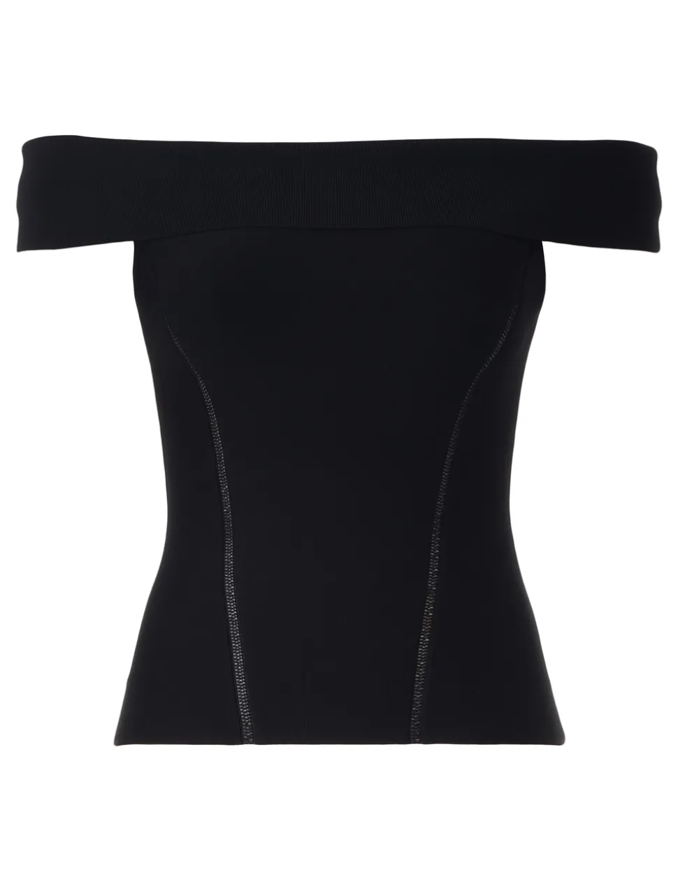 The Panelled Off-Shoulder Top In Black From Our Resort 2024 Collection, Matchmaker. An Off Shoulder Knit Top Finished With A Pointelle Stitch Detail Throughout.- Knit Top