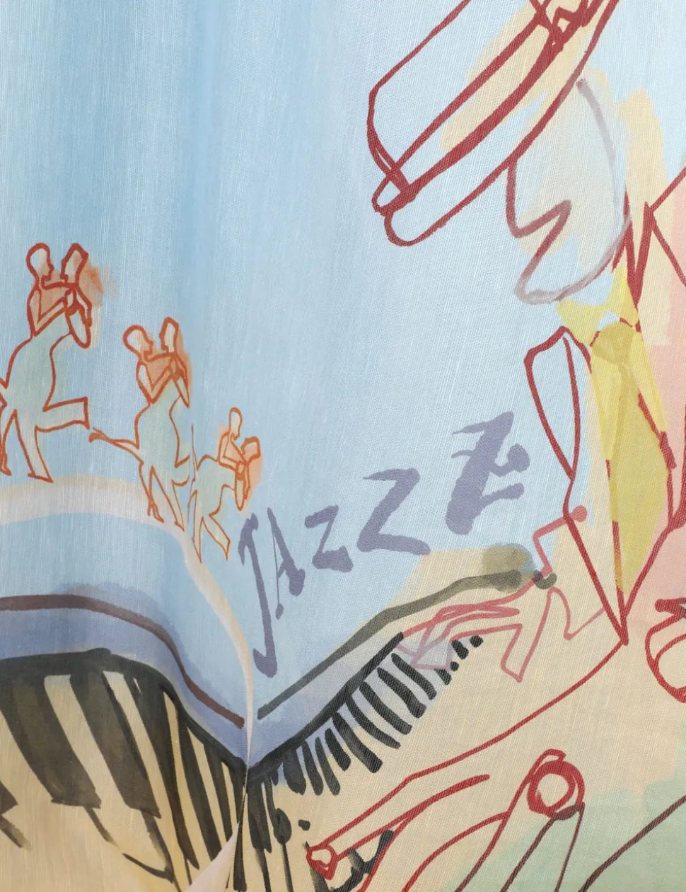 The Matchmaker Poster Flare Skirt In Poster Print From Our Resort 2024 Collection, Matchmaker. A Silk Linen Organza Skirt Featuring A Placement Print Piped Edges Throughout.- Silk Linen Organza