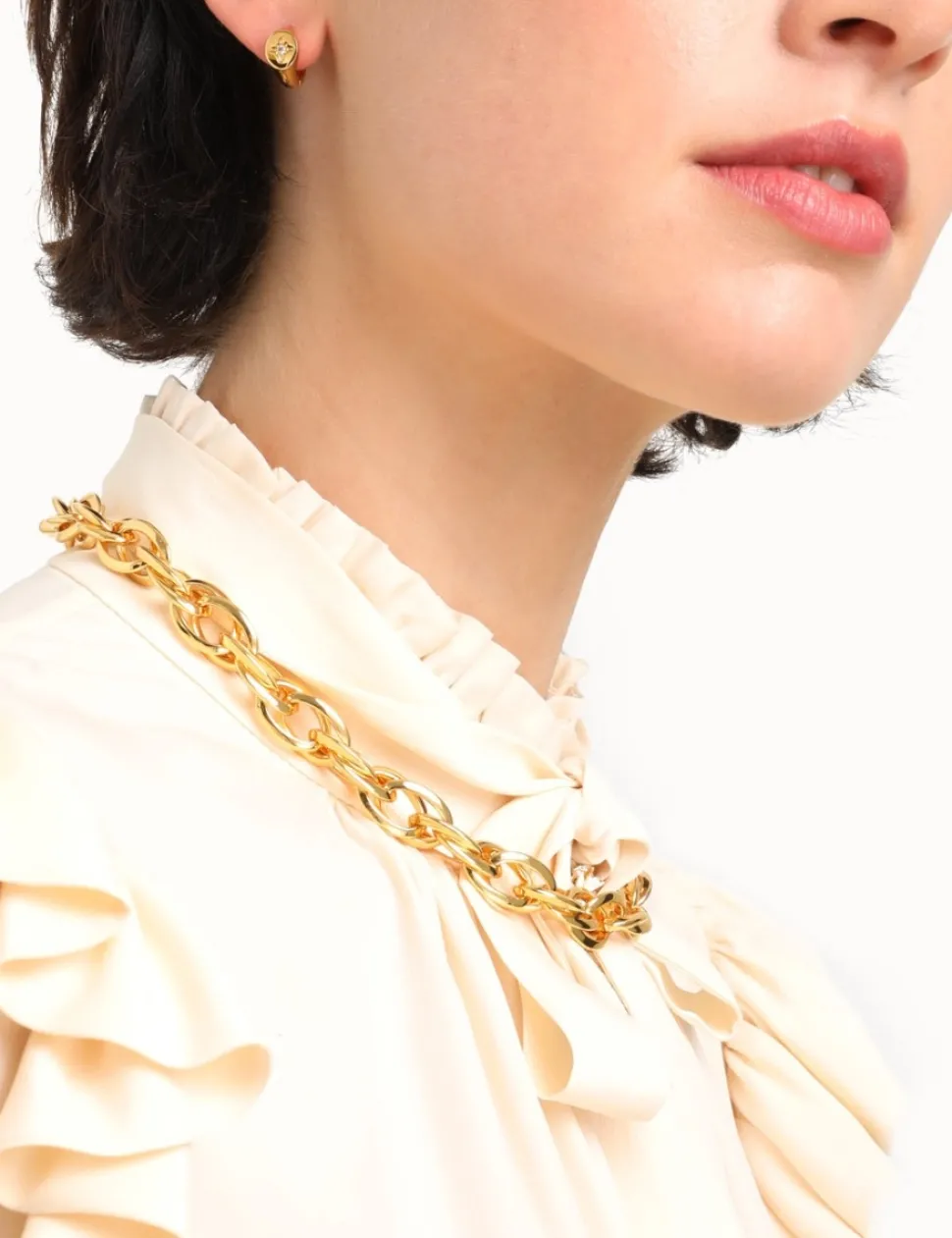 The Medium Knife Edge Chain In Gold From Our Spring 2023 Collection, Wonderland. A Gold Plated Chain Necklace.- 20K Gold Plated