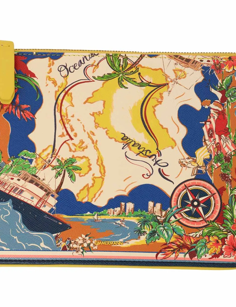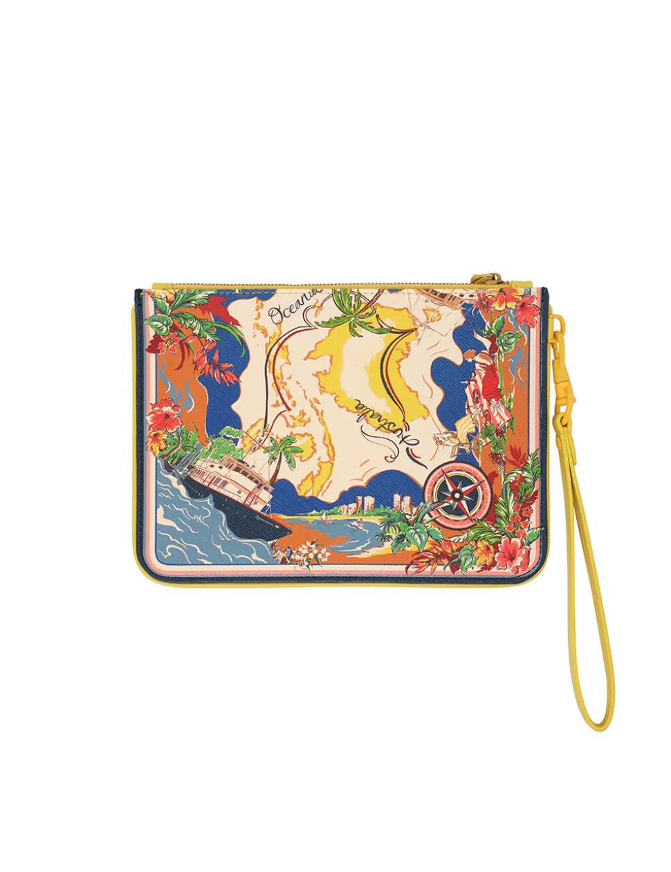 The Medium Printed Leather Pouch In Nautical Map From Our Resort 2024 Collection. A Saffiano Leather Pouch With A Wrist Handle.- Leather Pouch
