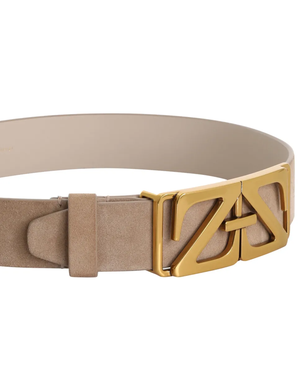 The Monogram Suede Waist Belt In Bone From Our Fall 2023 Collection, Luminosity. A Leather Waist Belt Featuring A Custom Monogram Buckle.- Suede Leather
