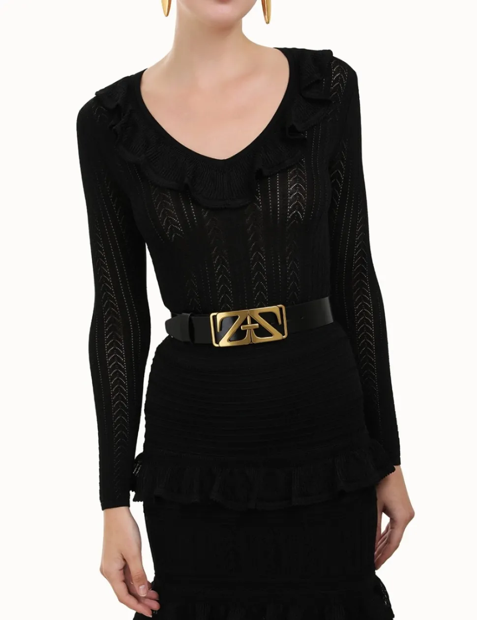 The Monogram Waist Belt In Black From Our Fall 2023 Collection, Luminosity. A Leather Waist Belt Featuring A Custom Monogram Buckle.- Leather