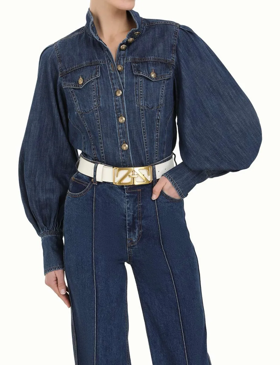 The Monogram Waist Belt In Cream From Our Fall 2023 Collection, Luminosity. A Leather Waist Belt Featuring A Custom Monogram Buckle.- Leather