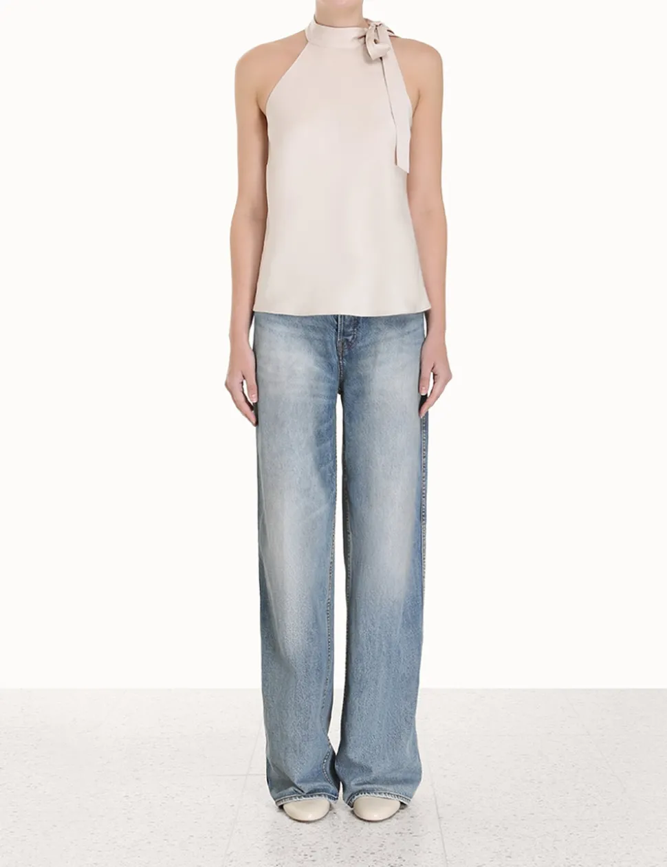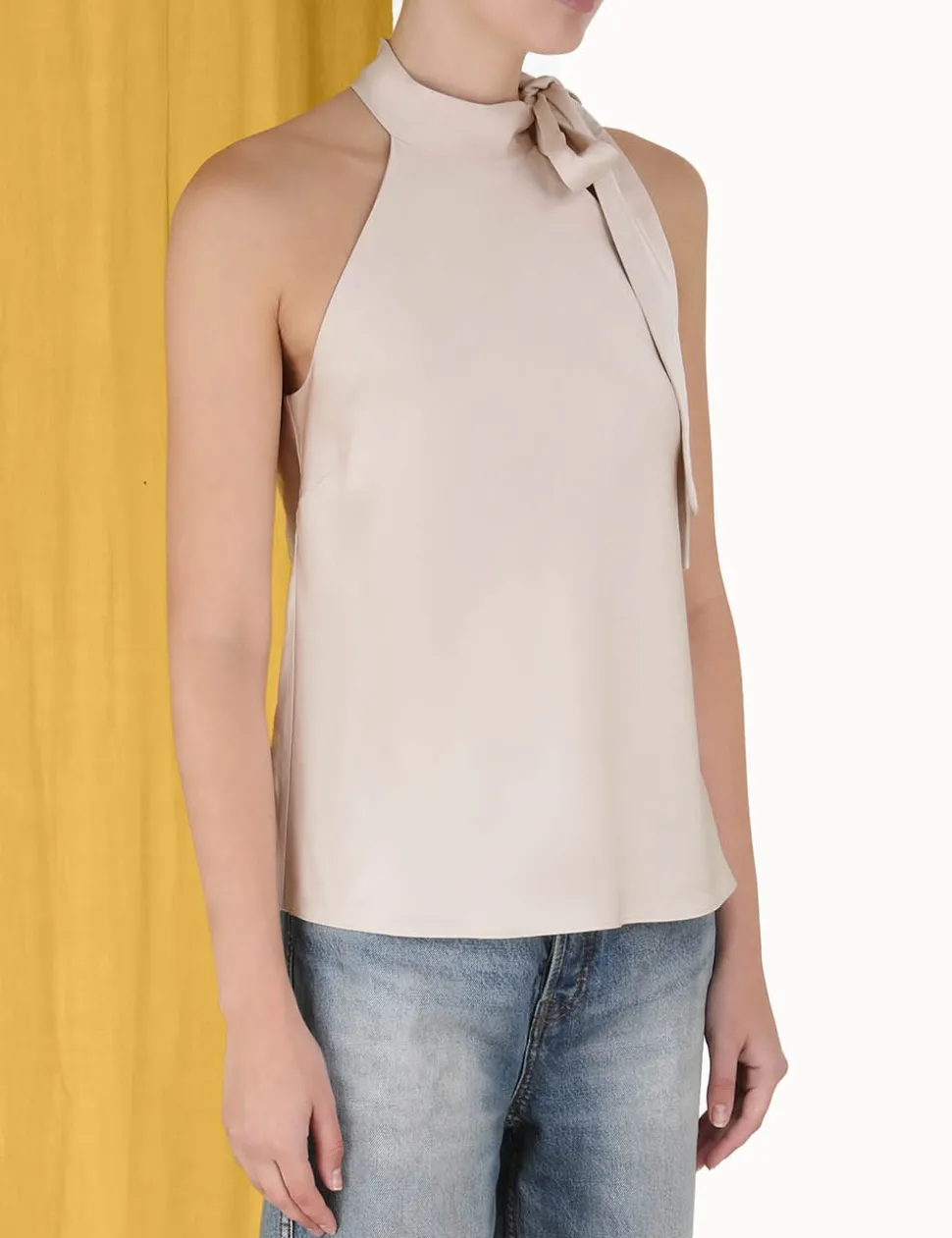 The Neck Tie Tank Top In Champagne From Our Fall 2023 Collection, Luminosity. A Sleeveless Tank Featuring A Self Tie Neck Tie.- Tank Top
