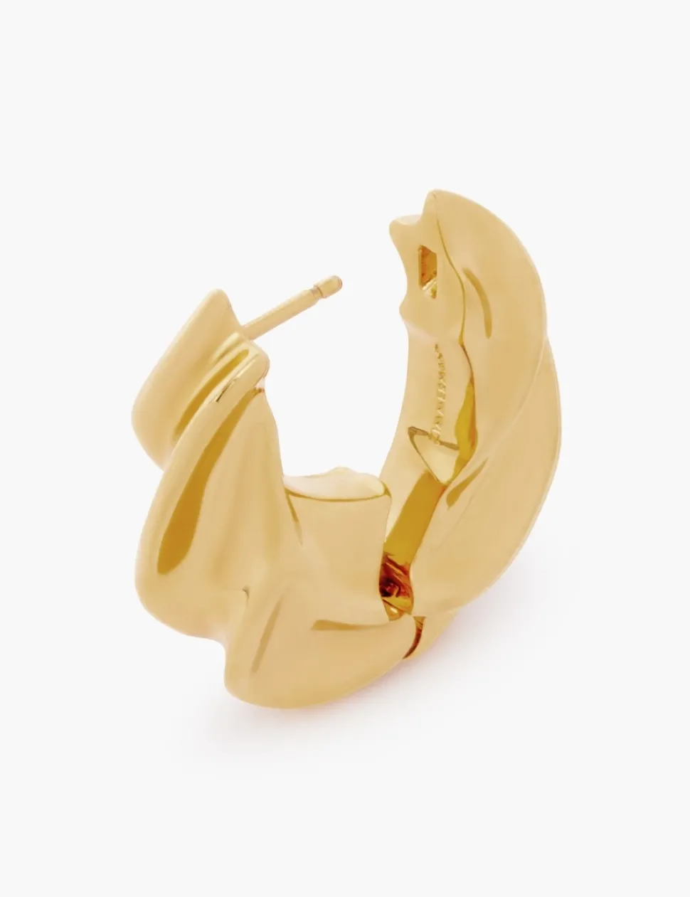 The Paint Stroke Hoops In Gold From Our Fall 2023 Collection, Luminosity. A Gold Plated Hoop Earring Featuring Twist Look Detailing Throughout.- 20Kt Gold Plated Brass