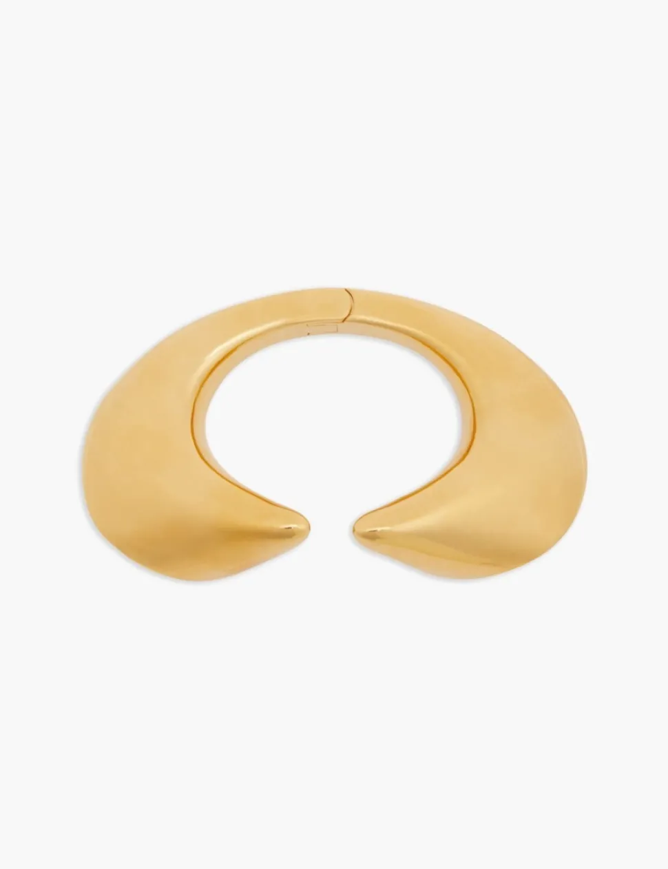 The Pleat Cuff In Gold From Our Fall 2023 Collection, Luminosity. A Gold Plated Wrist Cuff Featuring Oversized, Curved Ends.- 20Kt Gold Plated Brass