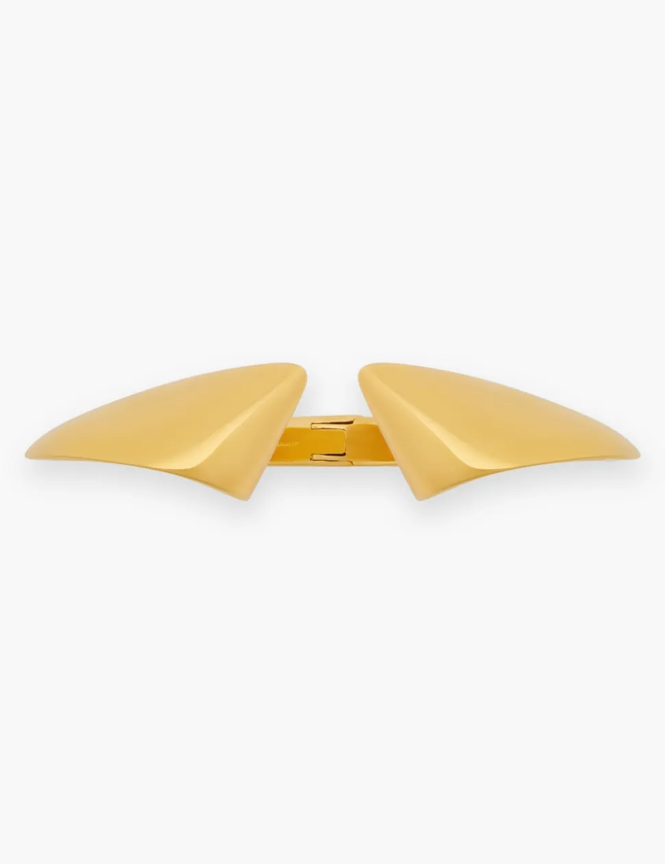 The Pleat Cuff In Gold From Our Fall 2023 Collection, Luminosity. A Gold Plated Wrist Cuff Featuring Oversized, Curved Ends.- 20Kt Gold Plated Brass