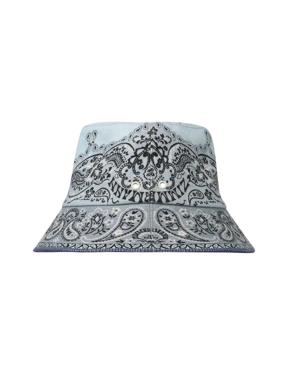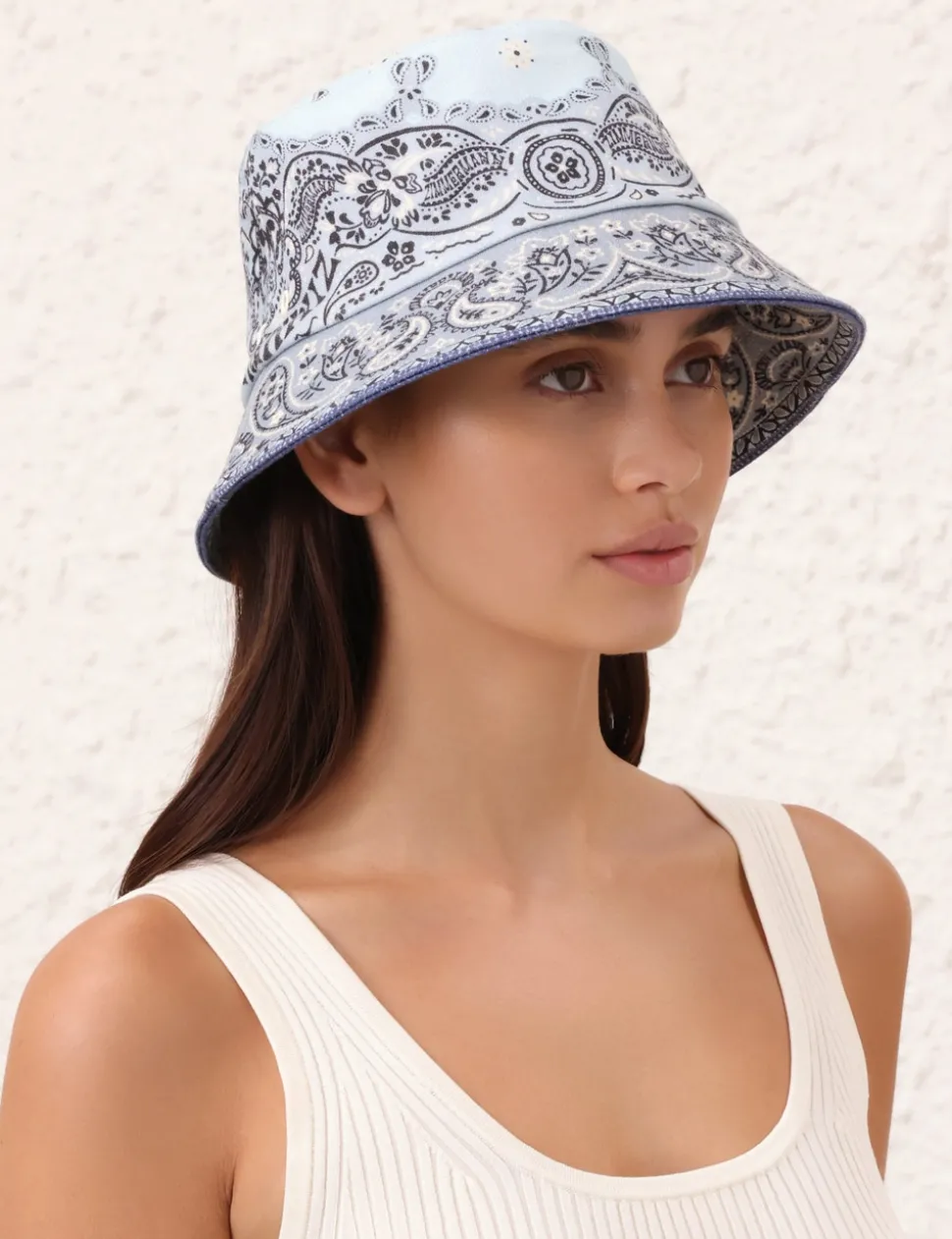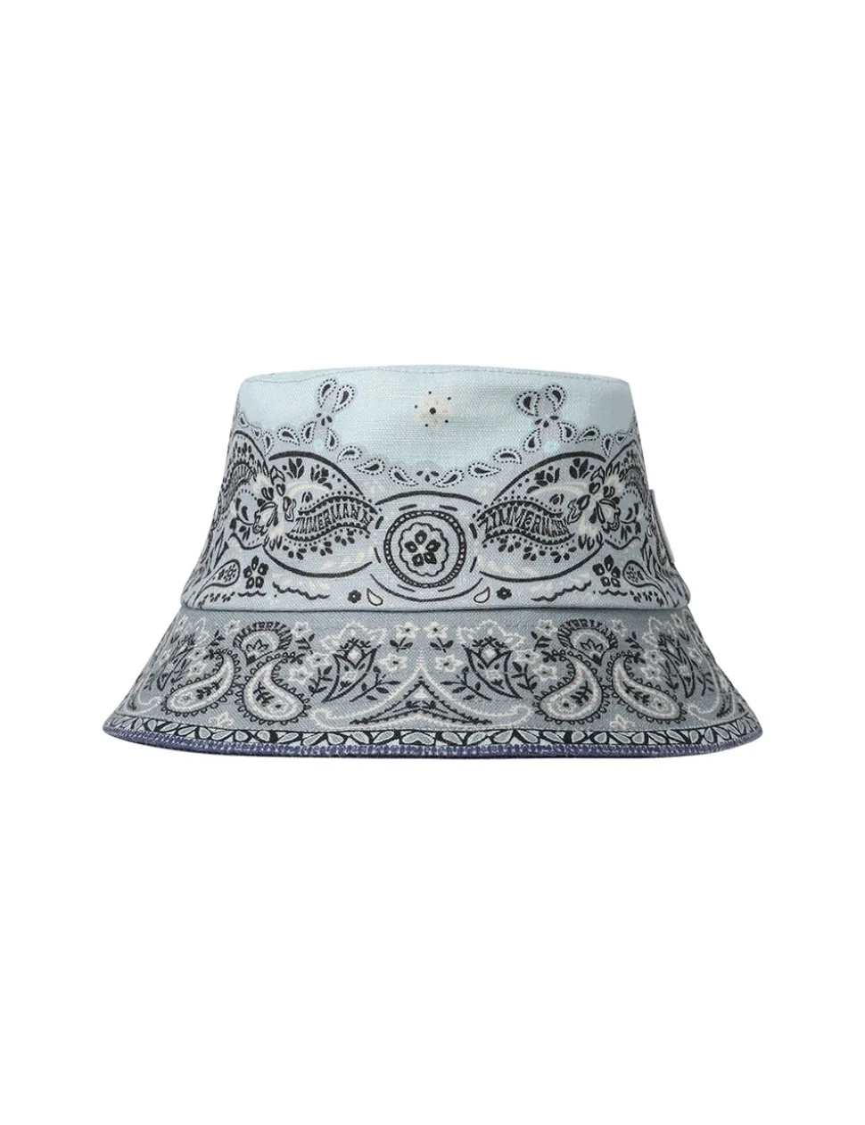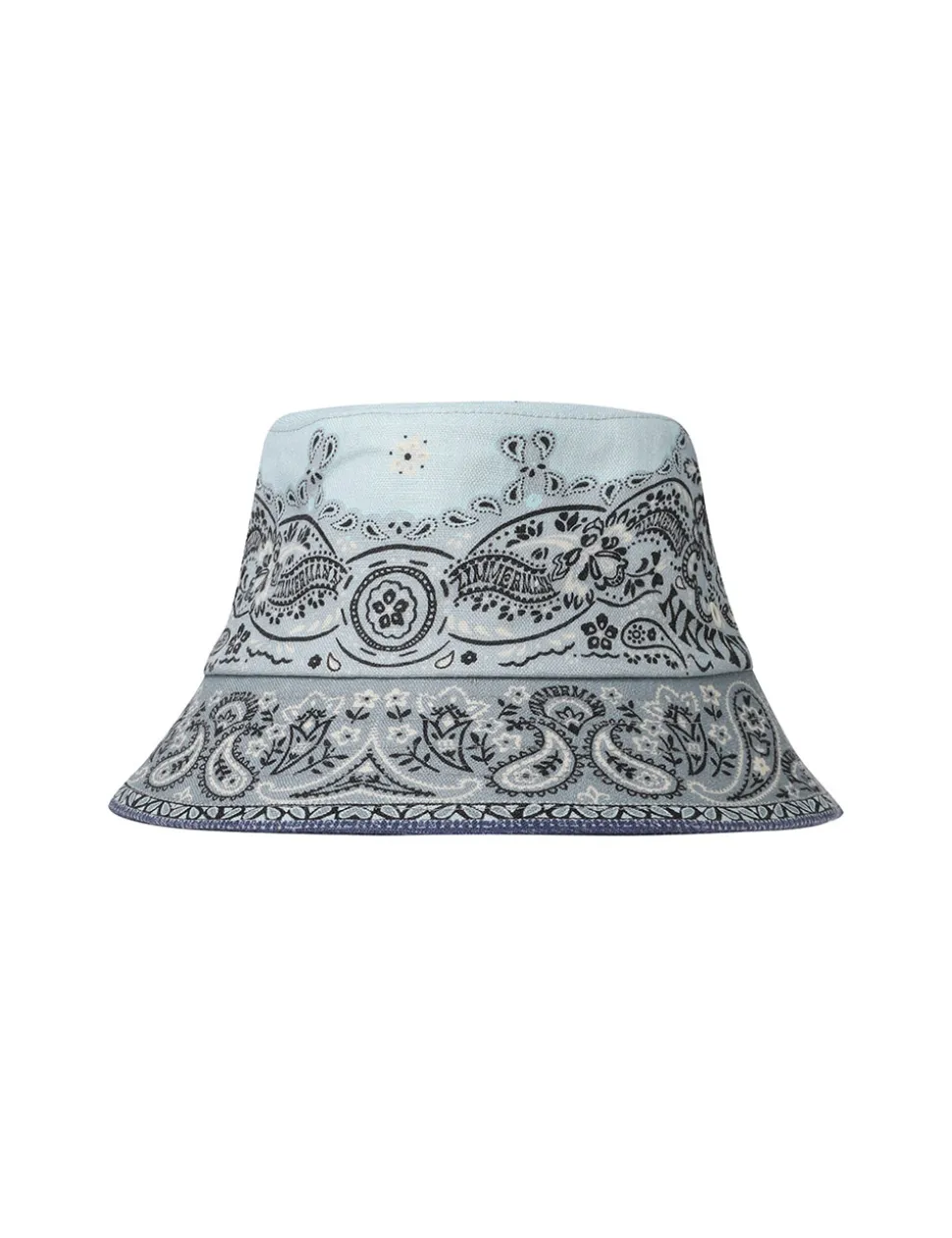 The Printed Canvas Bucket Hat In Blue Bandana From Our Resort 2024 Collection, Matchmaker. A Linen Bucket Hat Featuring Topstitching Around The Brim And Ventilation In The Crown.- Linen