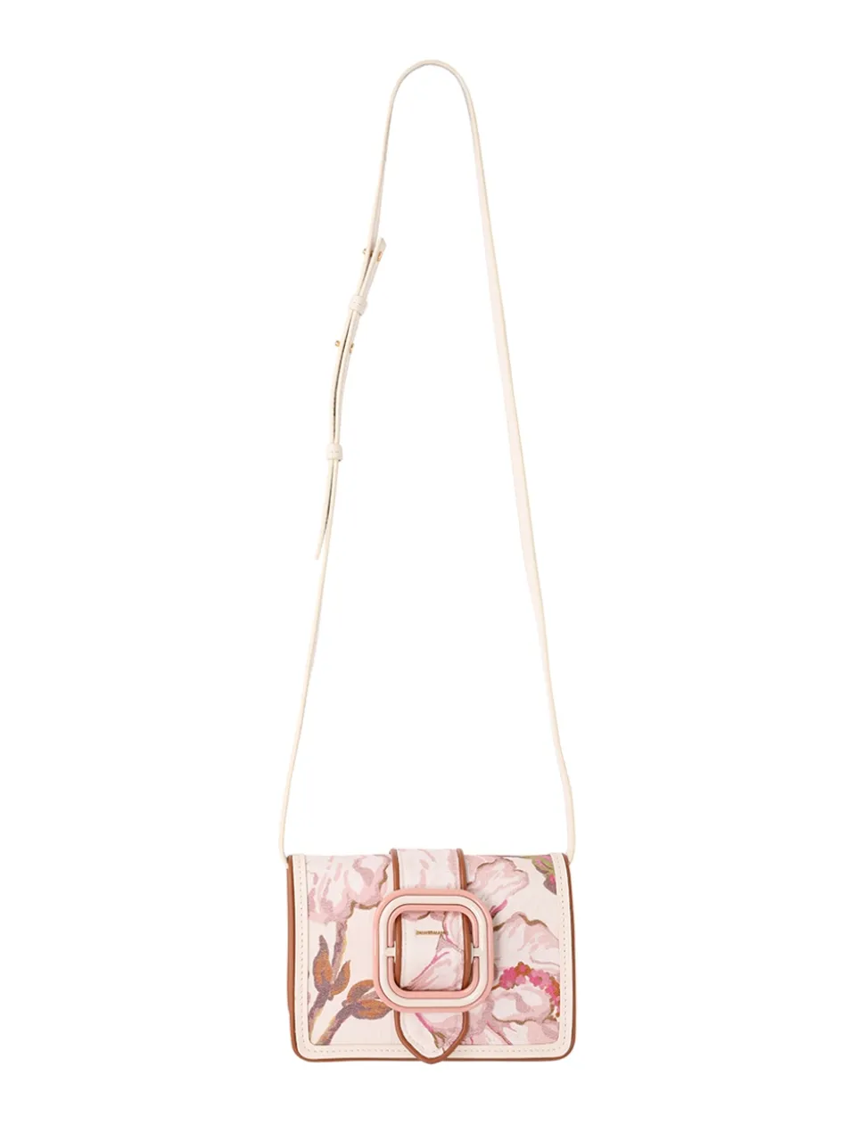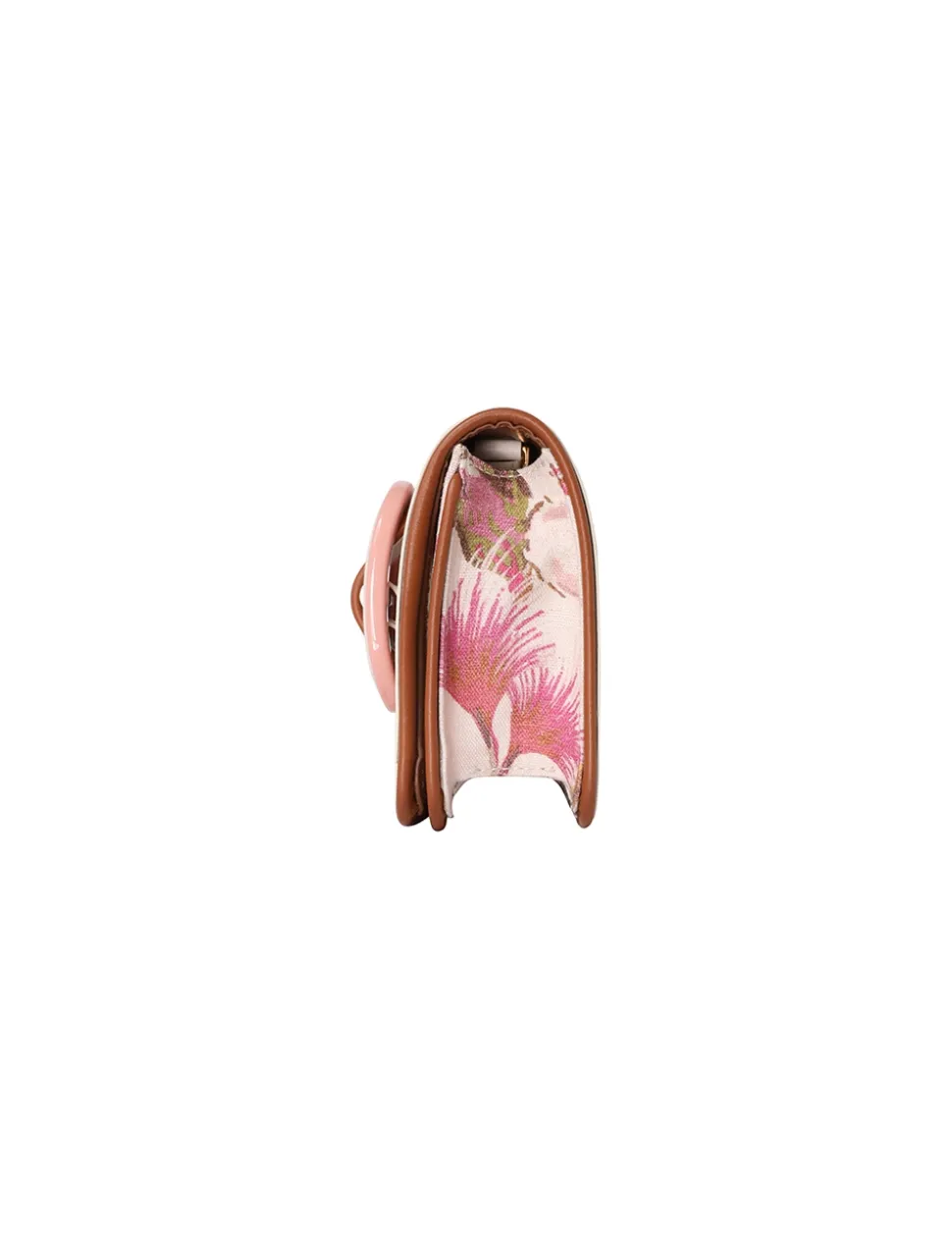 The Printed Small Cross Body Bag In Coral Hibiscus From Our Resort 2024 Collection, Matchmaker. A Small Linen Cross Body Bag Featuring A Buckle Front Design And An Internal Card Pocket.- Linen Cross Body Bag