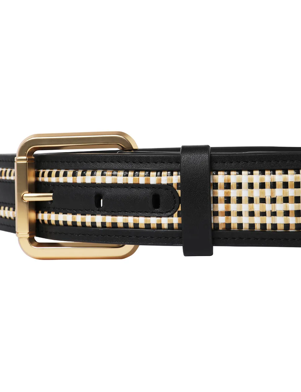 The Raffia Belt 90 In Black From Our Resort 2024 Collection, Matchmaker. A Leather Belt Featuring Contrast Raffia Throughout.- Waist Belt