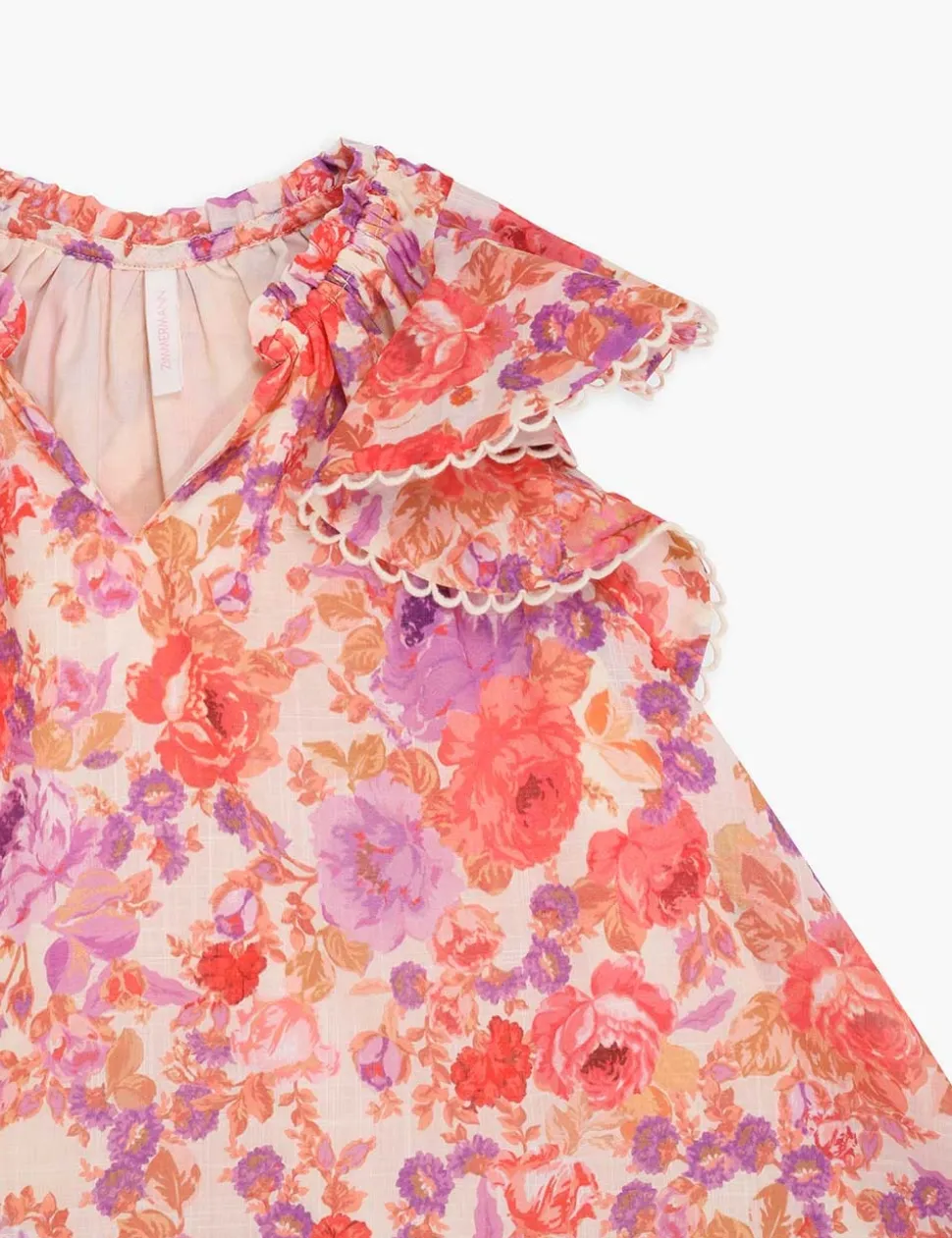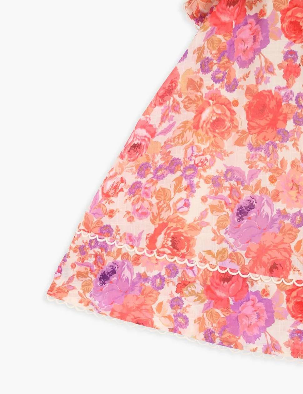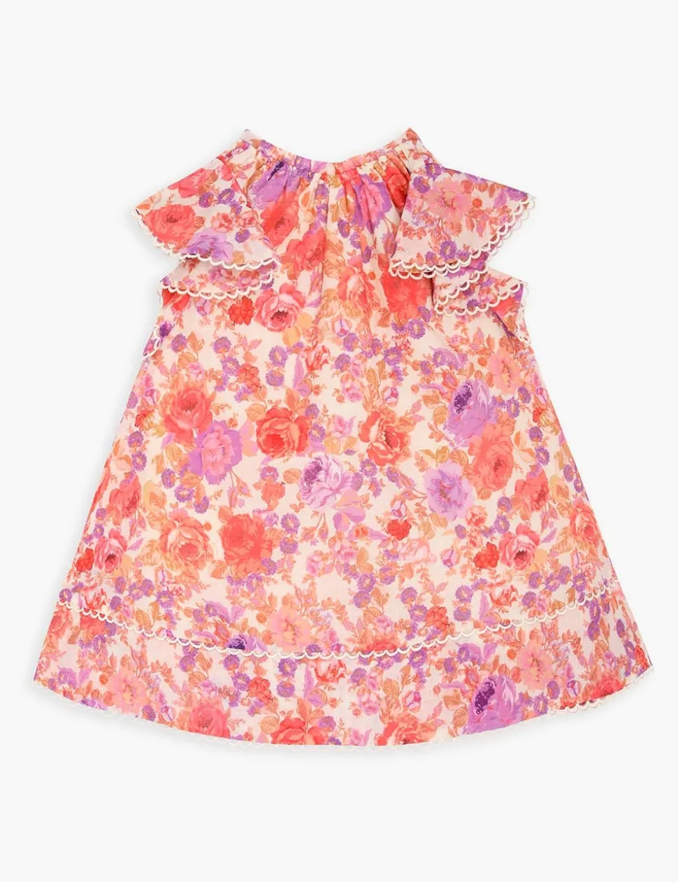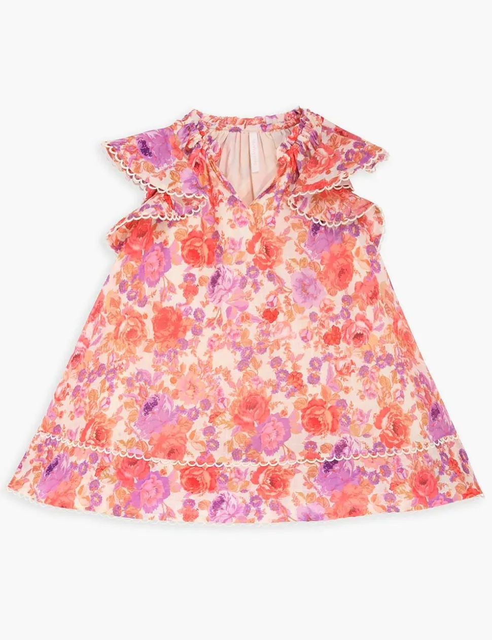 The Raie Flounce Sleeve Dress In Red/Purple Floralfrom Our Summer Swim 2023 Collection. A Cotton Dress Featuring Frills Throughout.- Cotton Dress