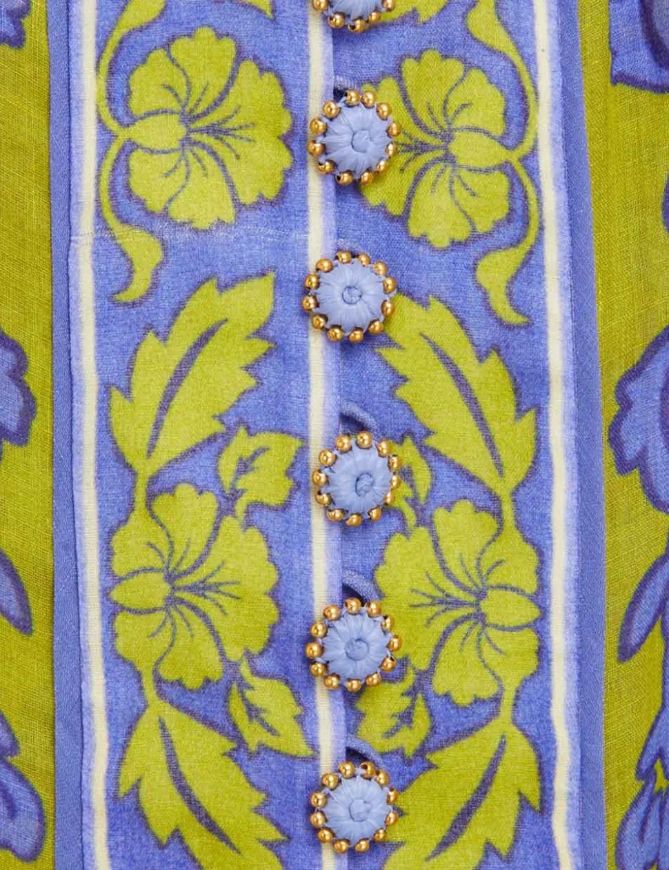 The Raie Lantern Mini Dress In Teal/Green Floral From Our Summer Swim 2023 Collection. A Ramie Mini Dress Featuring A Relaxed Swing Silhouette With Short Blouson Sleeves And A Drop Waist.- Shirred Collar And Cuffs