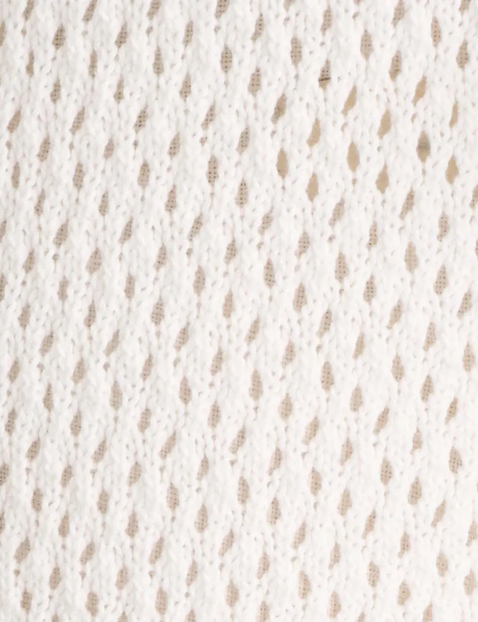 The Raie Mesh Knit Shorts In White From Our Summer Swim 2023 Collection. A Knitted Short Featuring Waist Ties.- Cotton Yarn