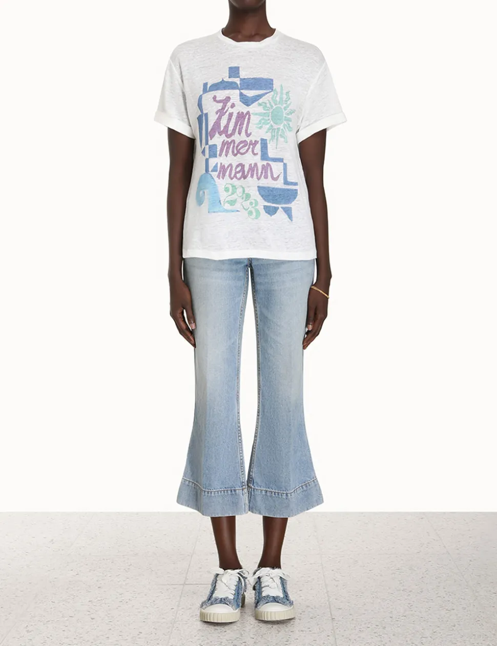 The Raie Roll Sleeve Tee In Ivory Print From Our Summer Swim 2023 Collection. A Relaxed Cotton Tee Featuring Short Sleeves.- Relaxed Fit Tee