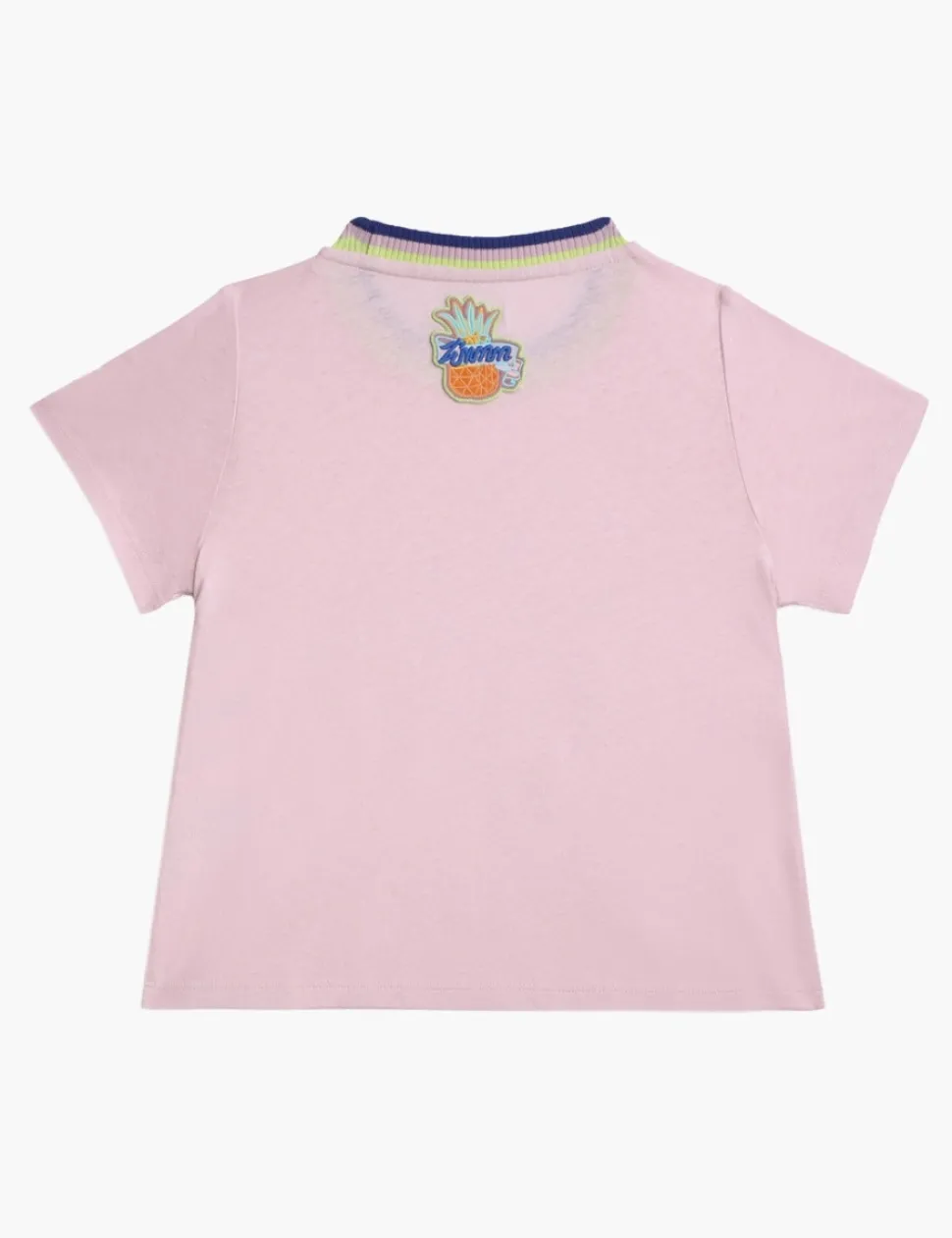 The Raie Zimmm Kids Tee In Blush From Our Summer Swim 2023 Collection. A Cotton Linen Tee With A Placement ‘Zimmermann’ Motif At Centre Front.- Cotton Linen Tee