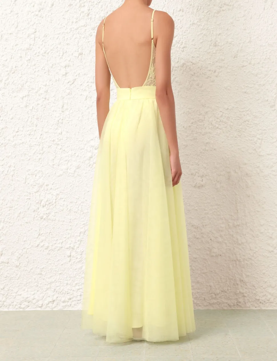 The Scoop Neck Bodysuit In Lemon From Our Resort 2024 Collection, Matchmaker. A Lace Bodysuit Featuring A Scoop Neck And Back, Finished With Adjustable Straps.- Stretch Lace