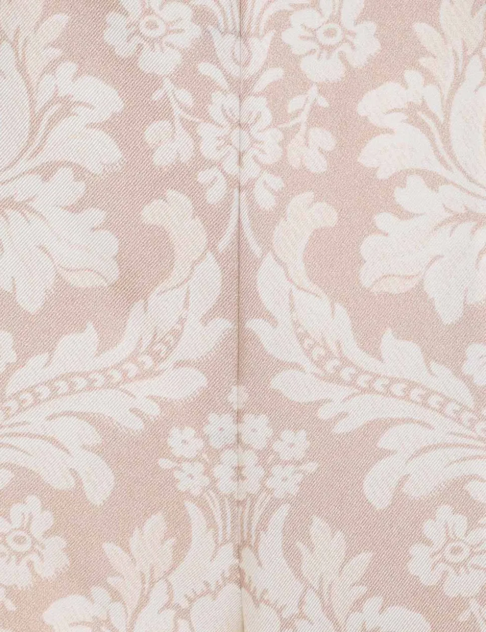 The Sensory Kick Flare In Beige Damask From Our Fall 2023 Collection, Luminosity. A Silk Twill Pant Featuring A Damask Print And An Elasticated Back Waist.- Silk Twill