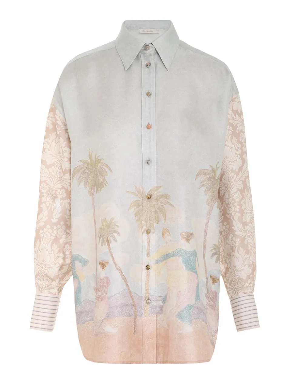 The Sensory Spliced Shirt In Spliced Print From Our Fall 2023 Collection, Luminosity. A Silk Shirt Featuring A Classic, Relaxed Silhouette And Spliced Prints Throughout.- Silk Shirt