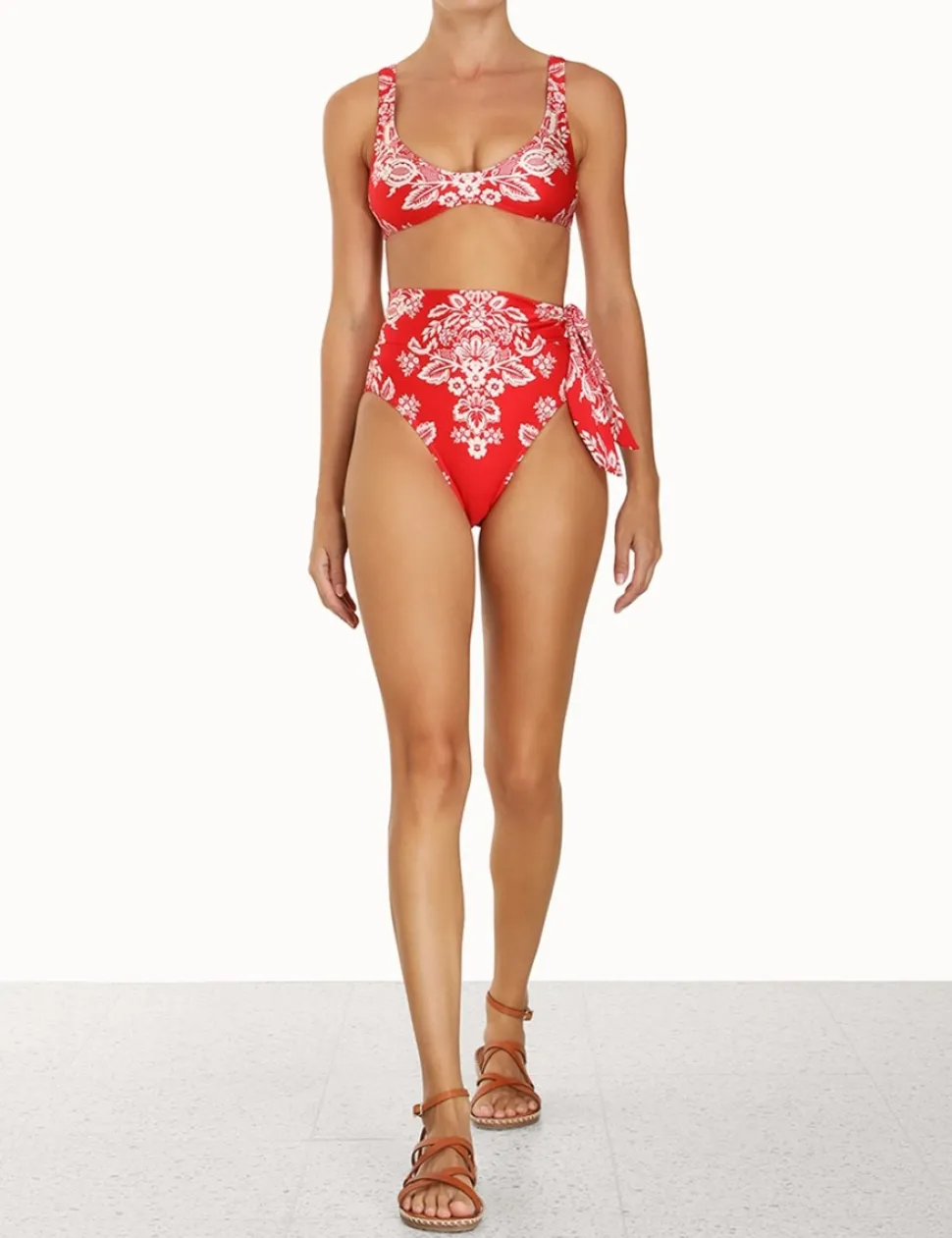 The Separates Scarf Hw Pant In Red/Cream From Our Summer Swim 2023 Collection. A High Waisted Bikini Pant Constructed From Italian Lycra Featuring A Self-Tie Detail At The Side Waist.- Italian Lycra
