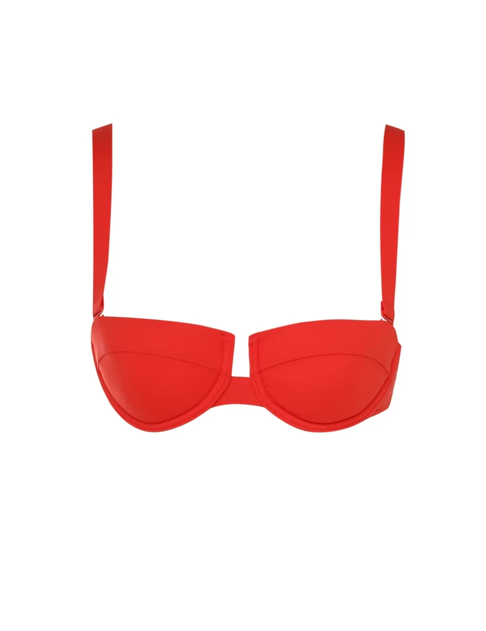 The Separates Sculpt Balconette In Red From Our Resort Swim 2024 Collection. A Balconette Bandeau Bikini Top Constructed From Form-Fitting Italian Lycra.- Italian Lycra