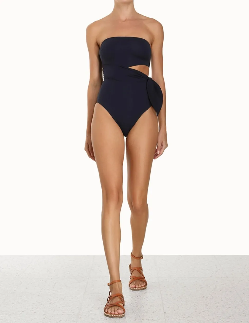 The Separates Sculpt Scarf Tie 1Pc In Indigo From Our Summer Swim 2023 Collection. A Form-Fitting Italian Lycra One Piece Featuring A Bandeau Neckline And Scarf Tie With A Cut Out At The Waist.- Italian Sculpt Lycra