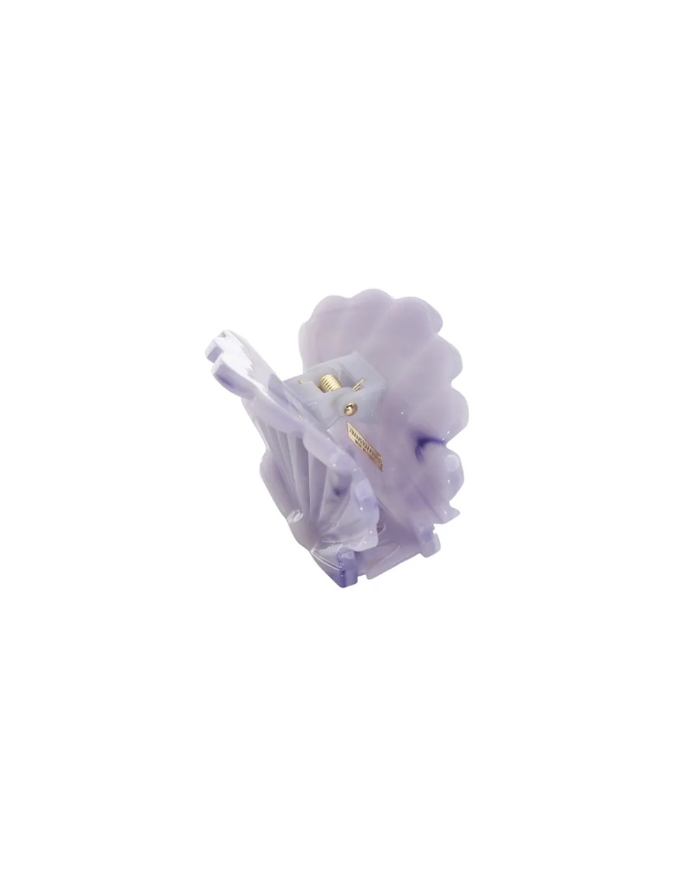 The Shell Clasp In Lilac From Our Summer Swim 2023 Collection. A Large Shell Hair Clasp Featuring Gold Hardware And Customised Zimmermann Branding.- Large Shell Hair Clasp